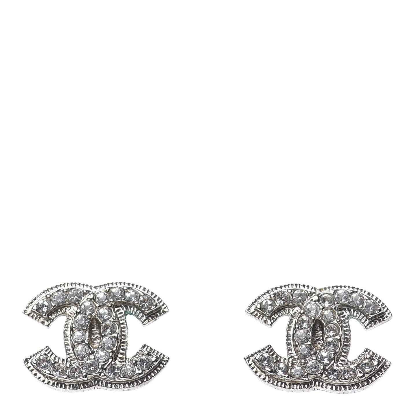 This is an authentic pair of CHANEL Crystal Mini CC Earrings in Silver. These elegant earrings feature a textured silver Chanel CC logo lined with glistening crystals.Follow this item for alerts. Chanel is a registered trademark of Chanel. FASHIONPHILE is not affiliated with Chanel.
