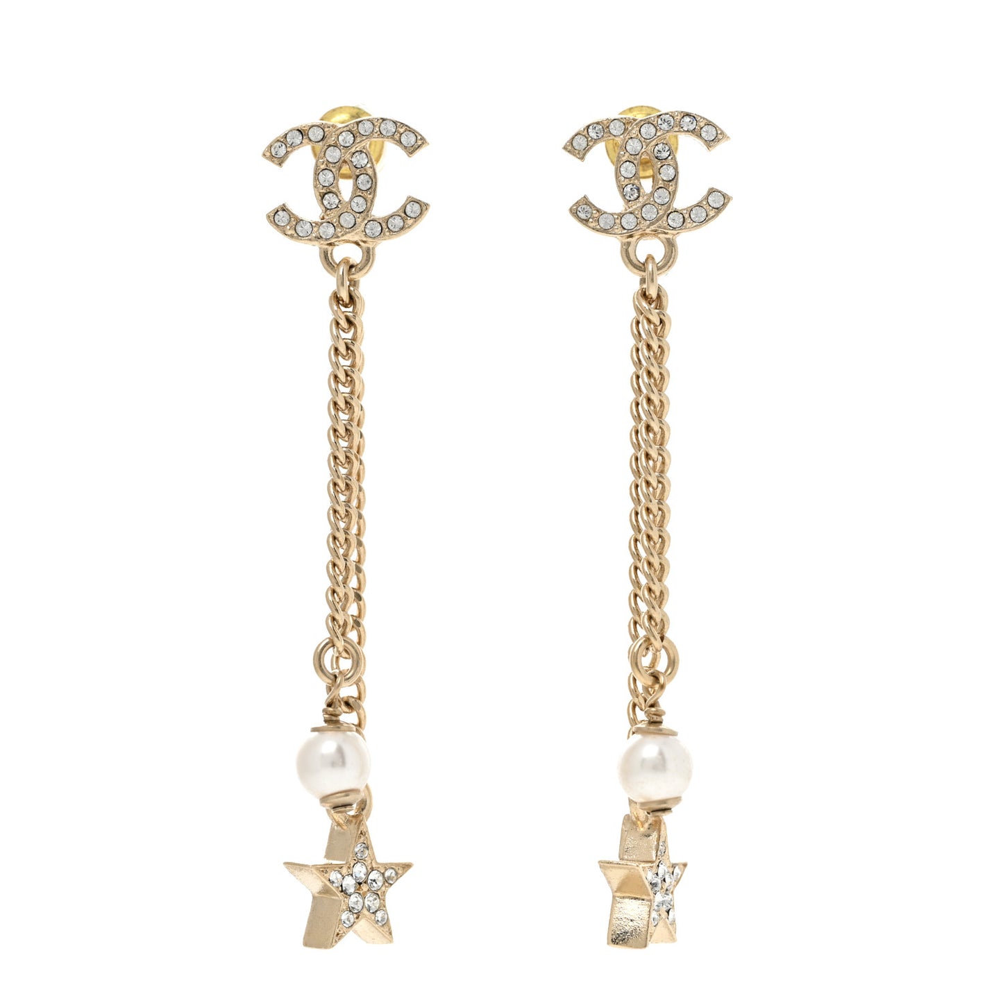 Chanel/ Jewelry/ Earrings /Chanel Crystal Pearl CC Star Earrings Gold
