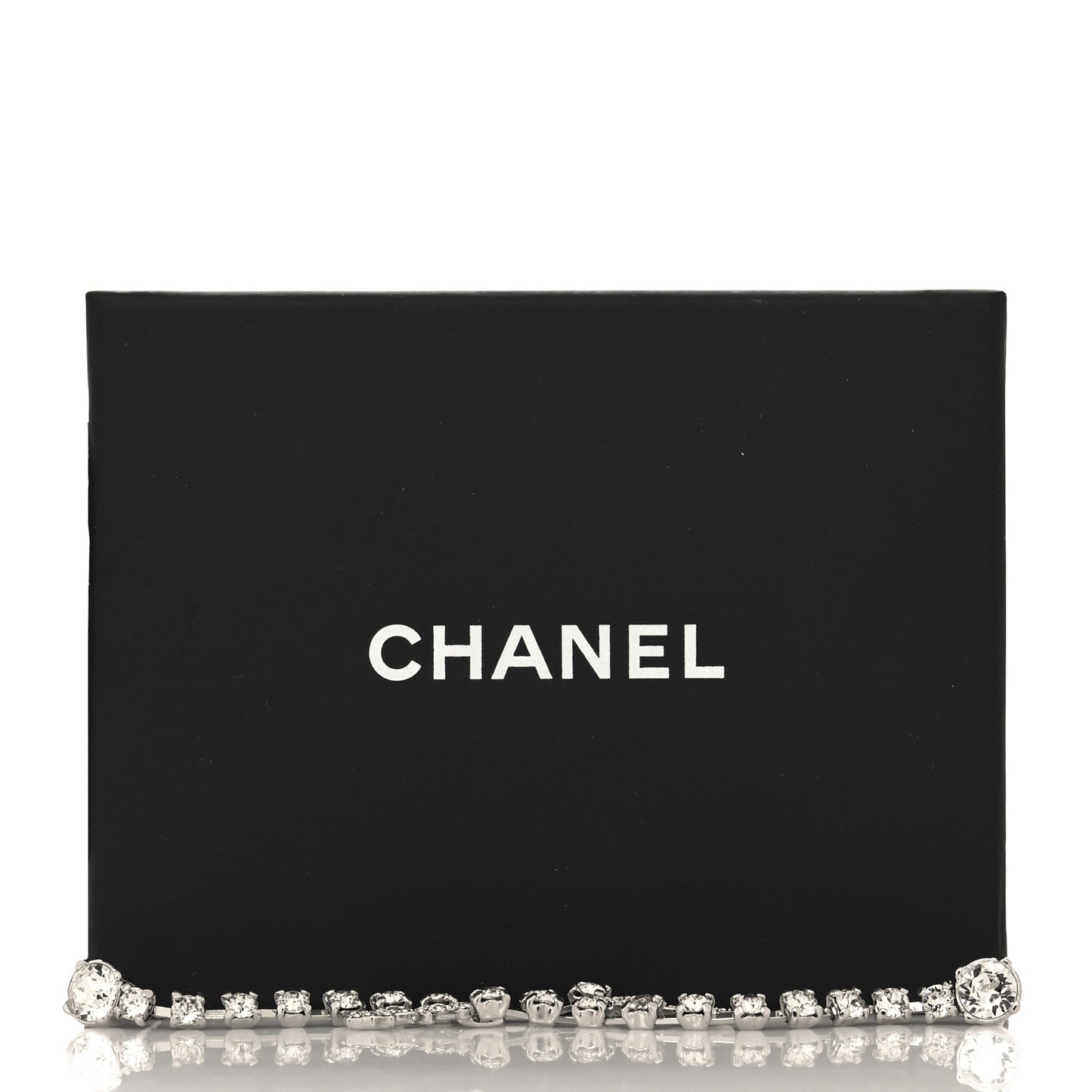 This is an authentic pair of CHANEL Crystal Starfall Drop Long CC Earrings in Silver. These classic earrings feature a single crystal at the earlobe accented by a cascading crystal chain and a CC logo and star at the end.Follow this item for alerts. Chanel is a registered trademark of Chanel. FASHIONPHILE is not affiliated with Chanel.