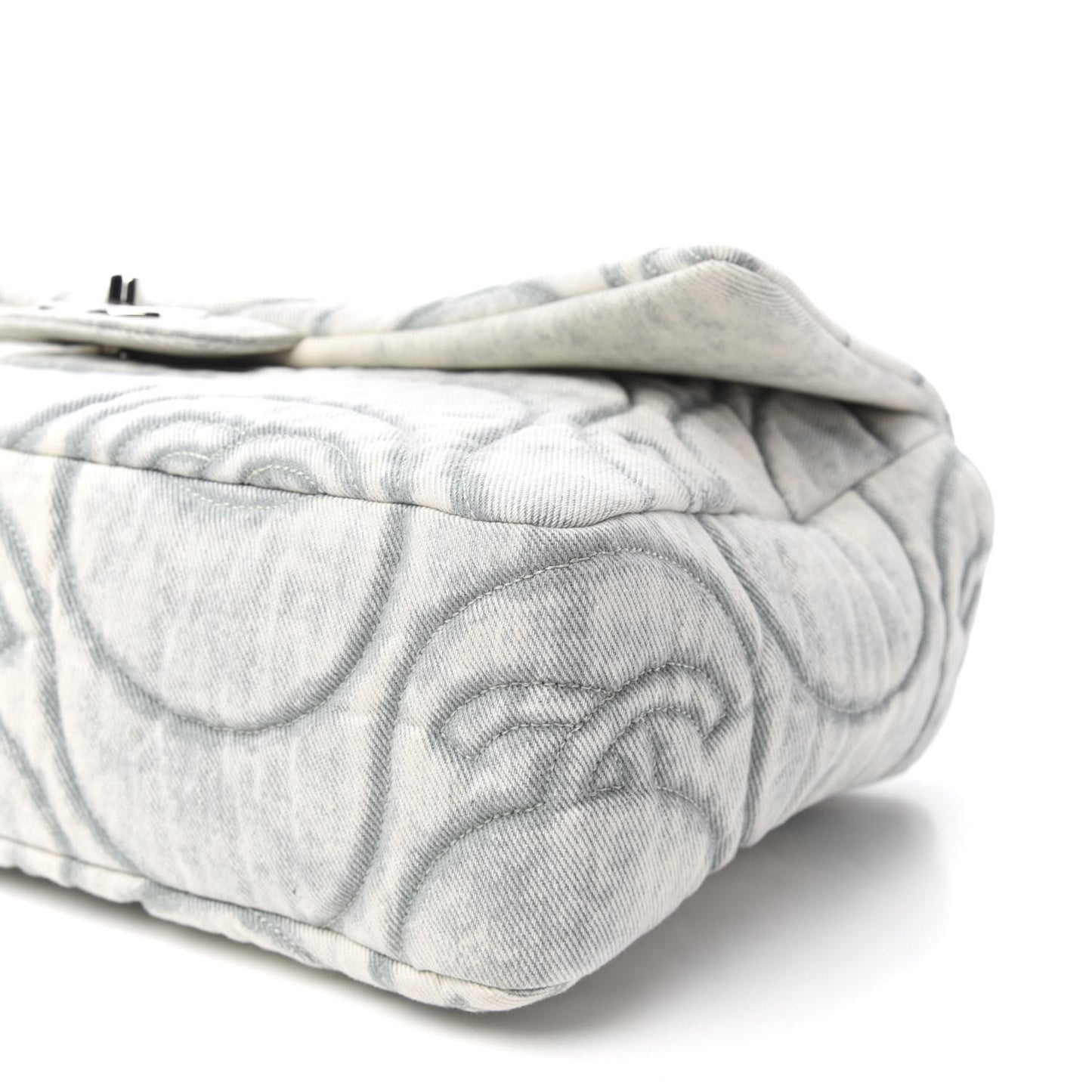 This is an authentic CHANEL Denim Embossed CC Logo Print Jumbo Single Flap in Blue. This chic shoulder bag is crafted of embossed denim in light blue. The bag features a silver chain denim-threaded shoulder strap and a flap with a matching silver Chanel CC turn-lock. This opens to a matching denim interior with pockets.Follow this item for alerts. Chanel is a registered trademark of Chanel. FASHIONPHILE is not affiliated with Chanel.