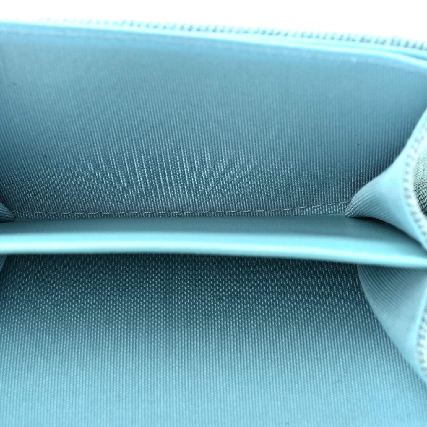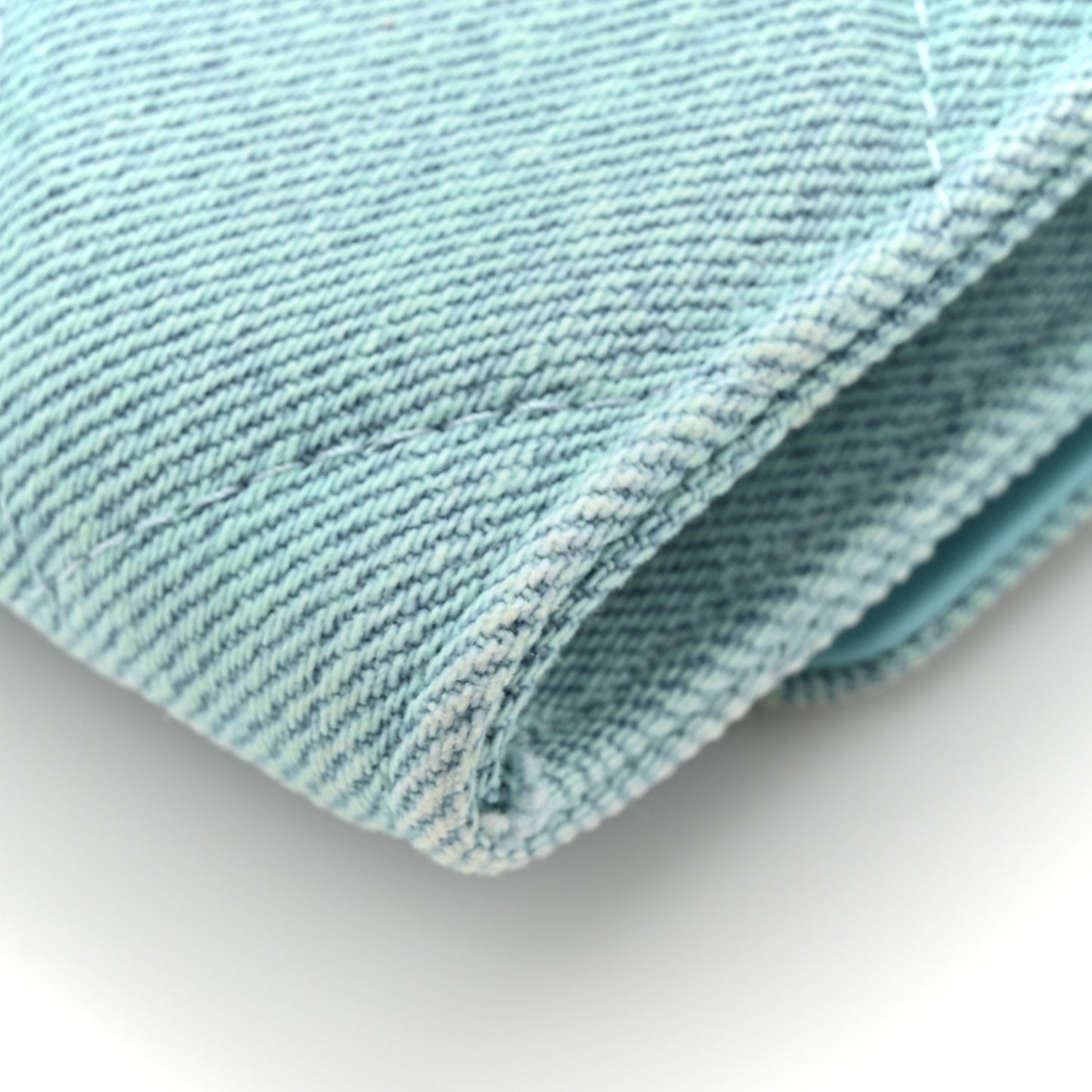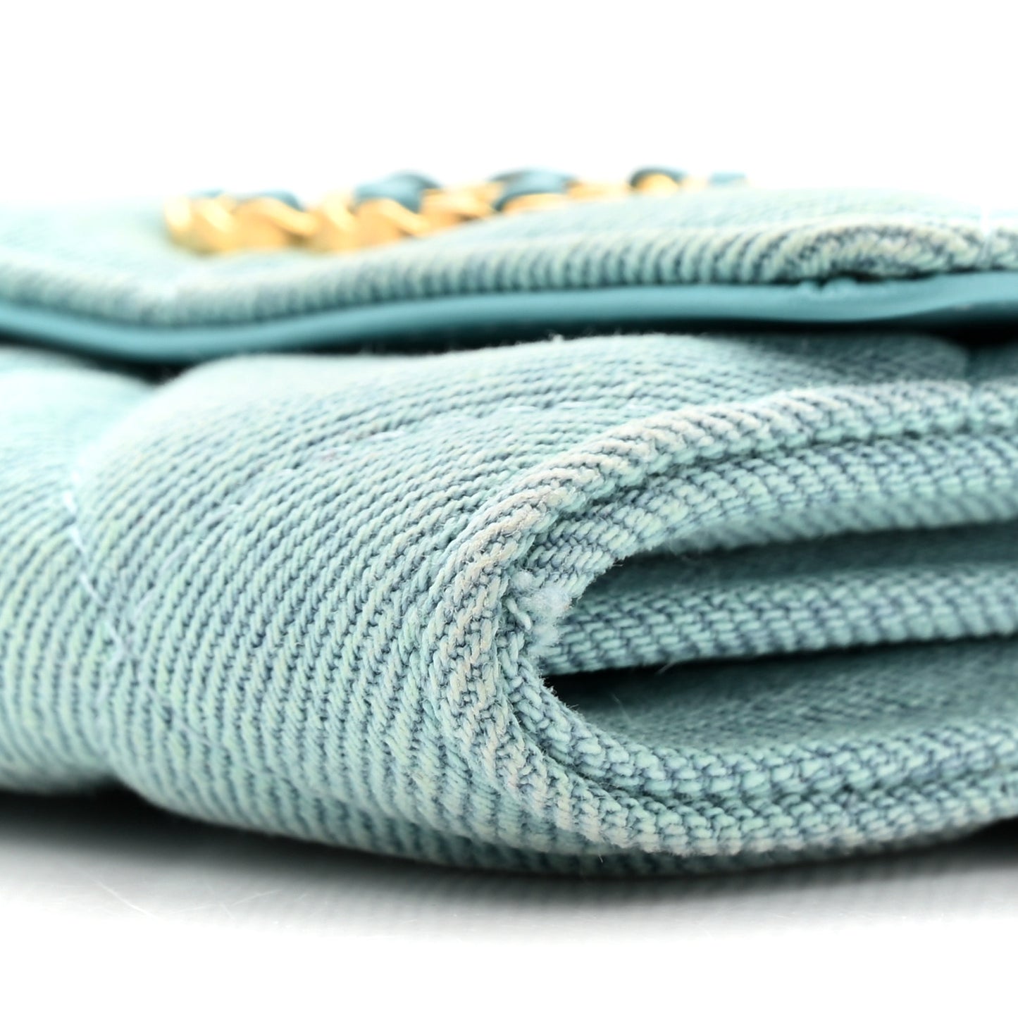 Denim Quilted Chanel 19 Flap Card Holder With Chain Light Blue