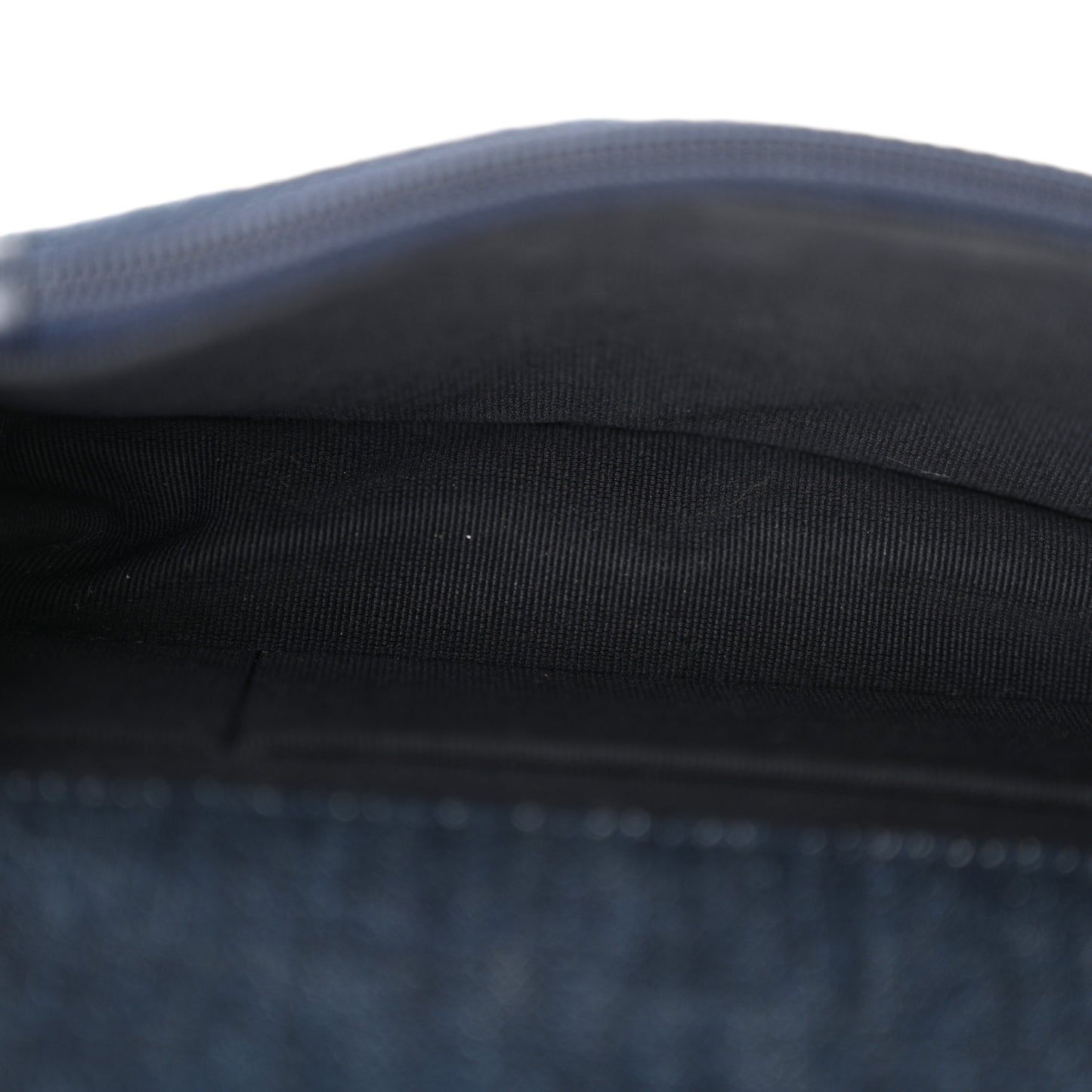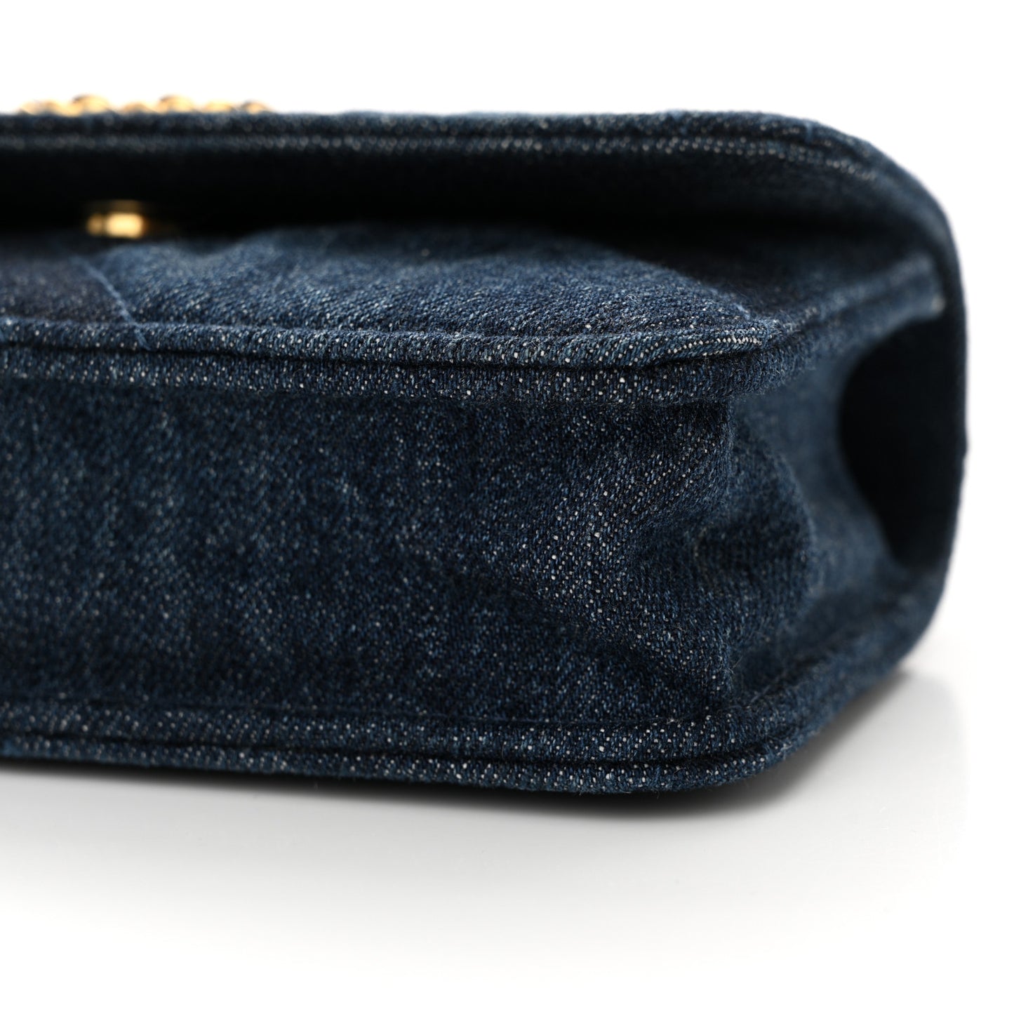 Denim Quilted Chanel 19 Flap Phone Holder With Chain Blue