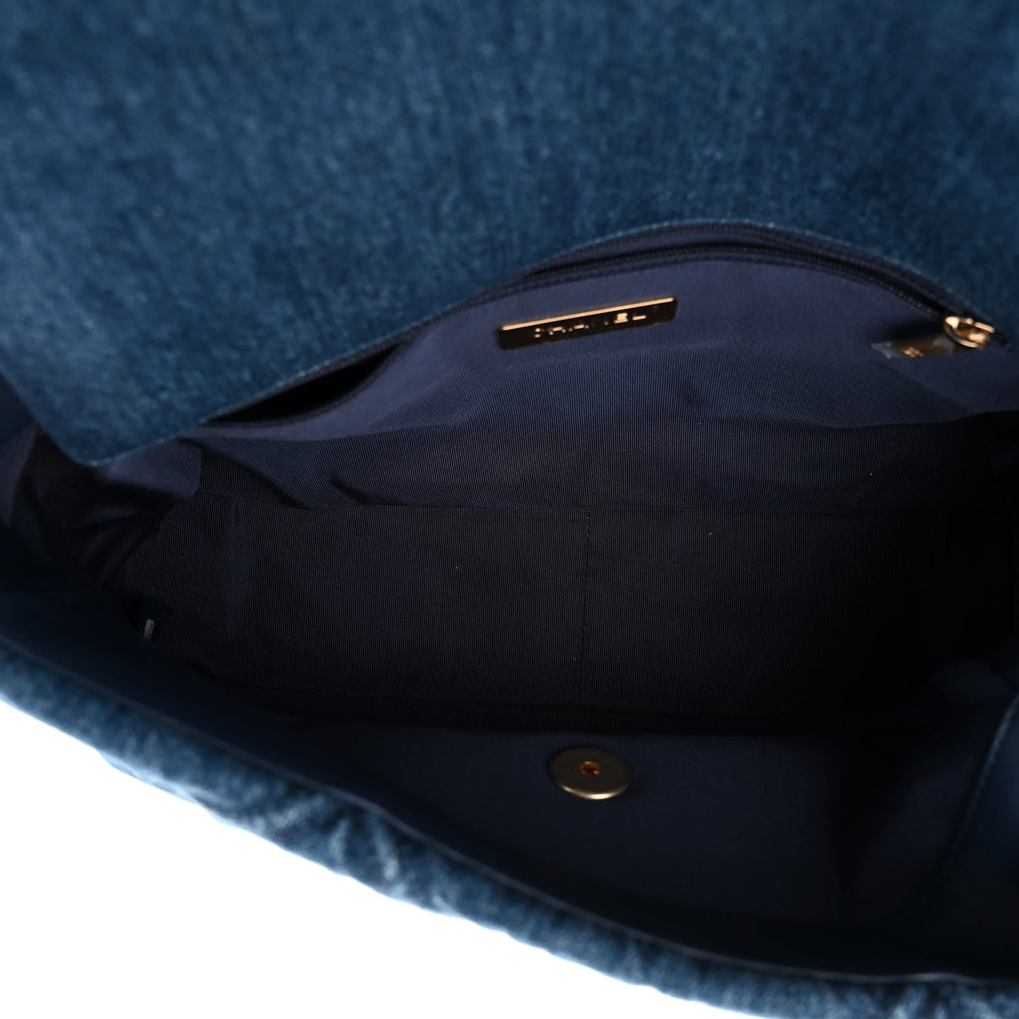 Chanel/ Bags/ Shoulder Bags /Chanel Denim Quilted Large Chanel 19 Flap Blue