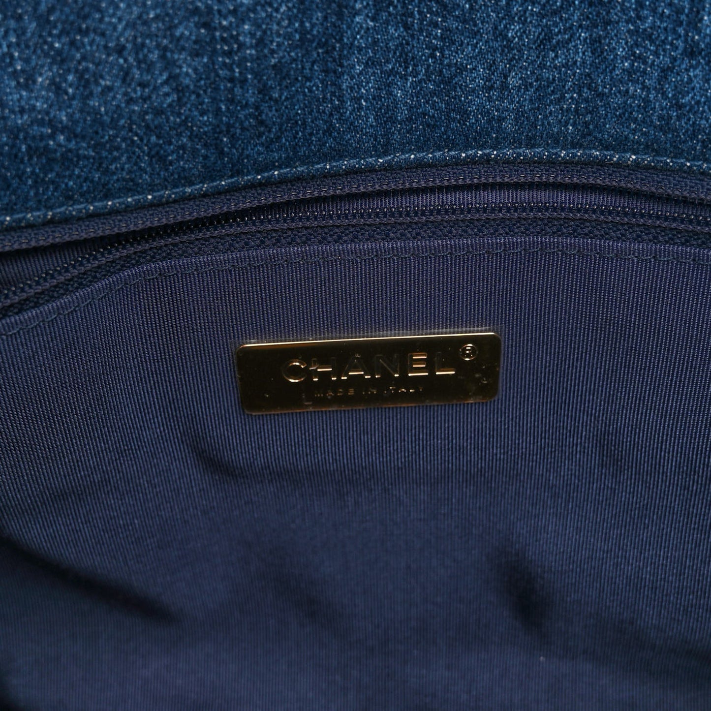 This is an authentic CHANEL Denim Quilted Large Chanel 19 Flap in Blue. This pillowy soft shoulder bag is crafted of oversized quilted denim in blue. The refined bag features an aged gold chain detail CC turn-lock on the flap, a magnetic snap pocket at the rear, and a leather threaded aged gold, ruthenium, and dark silver chain-link shoulder strap with a leather shoulder pad. The front flap opens to a blue fabric interior with a zipper pocket.Follow this item for alerts. Chanel is a registered trademark of Chanel. FASHIONPHILE is not affiliated with Chanel.