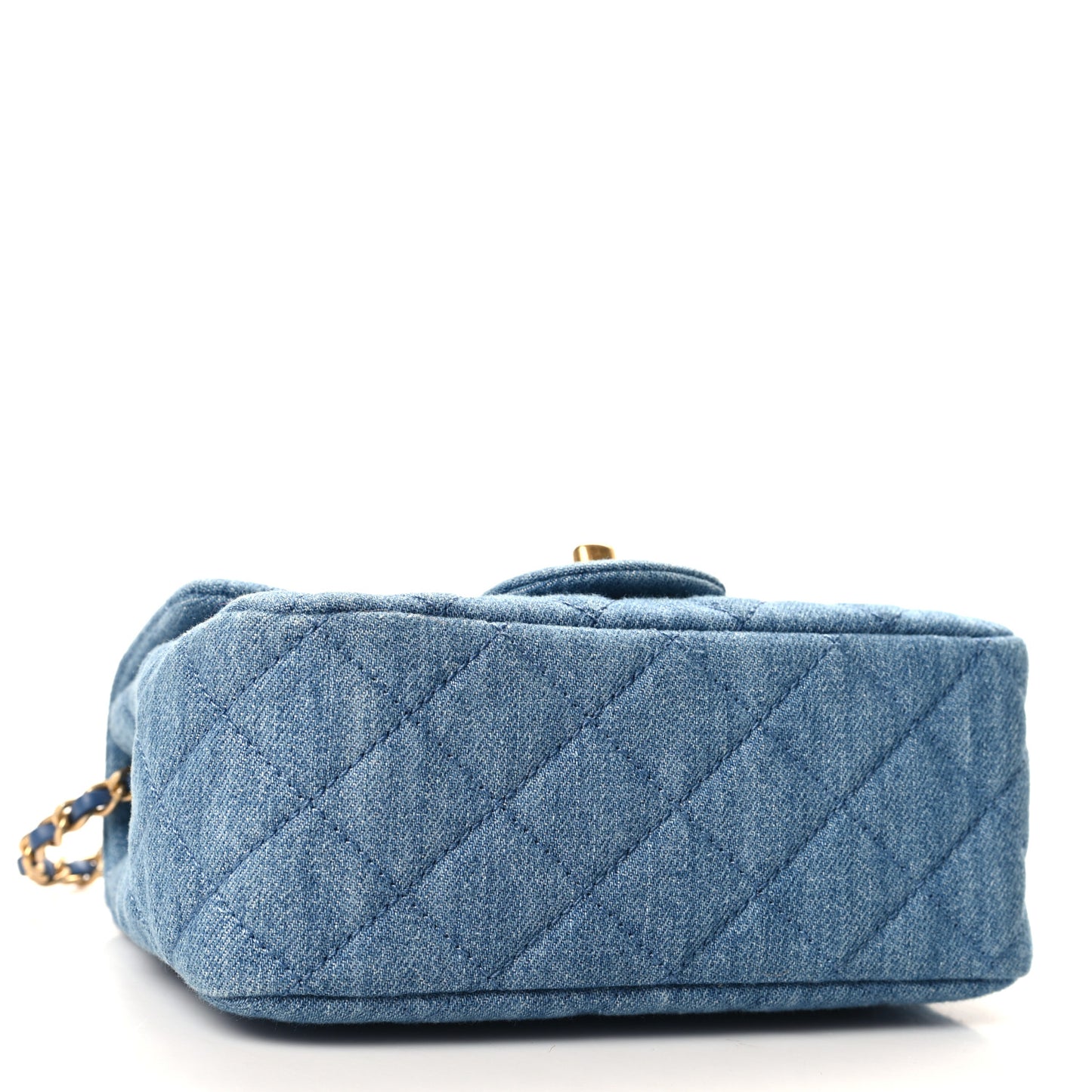 Denim Quilted Mini Pearl Crush Flap Blue