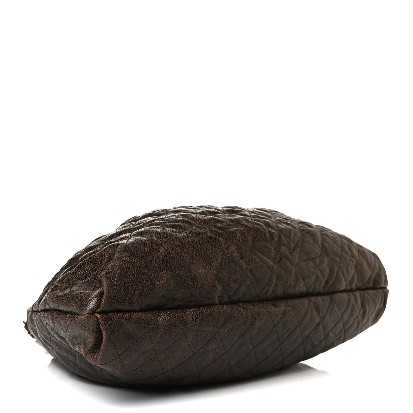 This is an authentic CHANEL Distressed Glazed Caviar Quilted Medium Elastic Tote in Brown. This stunning shoulder bag crafted of diamond quilted glazed caviar leather. This large sized bag features silver, chain link, leather threaded shoulder straps with shoulder pad. The bag opens to a gray fabric interior.Follow this item for alerts. Chanel is a registered trademark of Chanel. FASHIONPHILE is not affiliated with Chanel.
