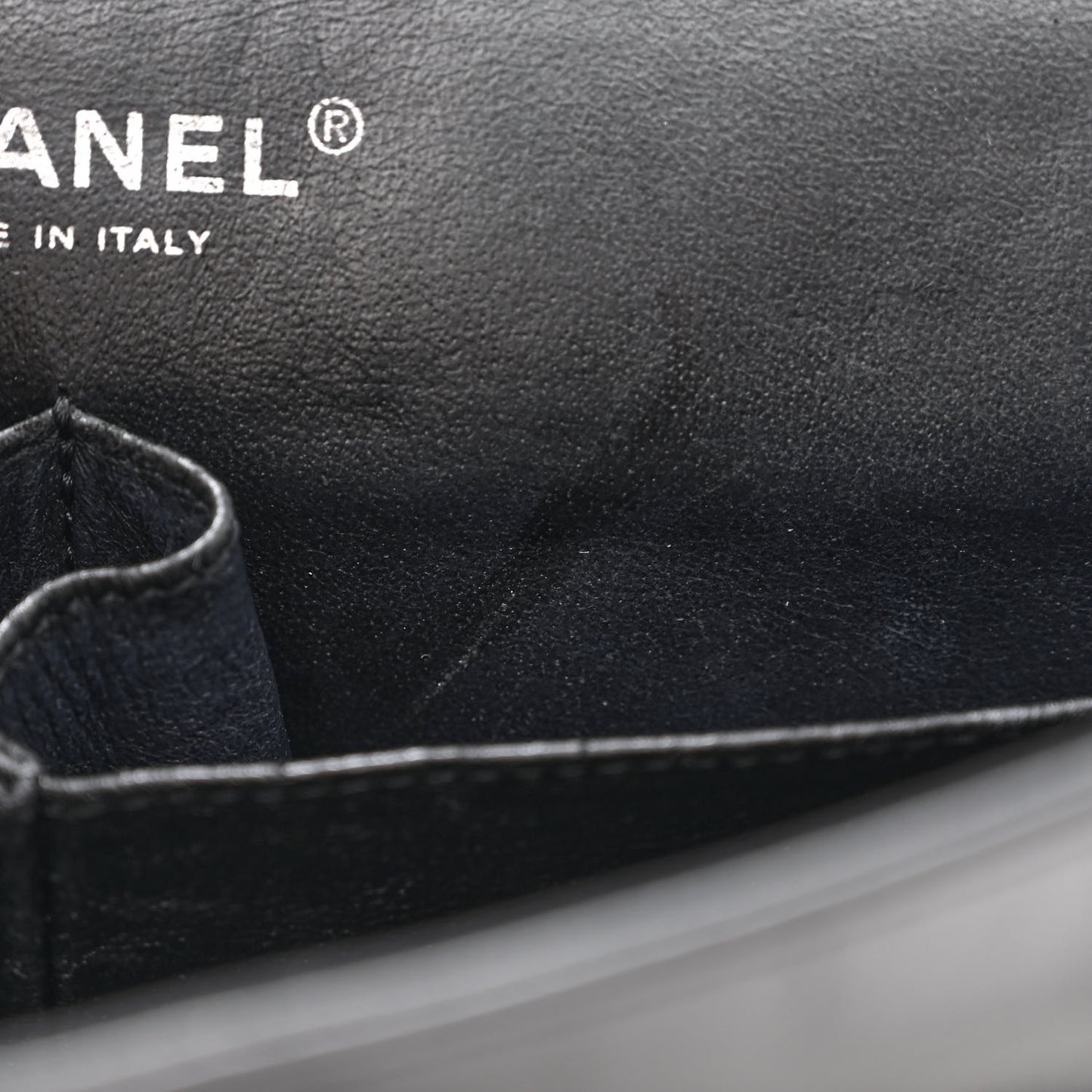 This is an authentic CHANEL Distressed Patent Quilted 2.55 Reissue 227 Flap in Black. This stylish shoulder bag is beautifully crafted of diamond quilted patent leather in black. The bag features silver tightly linked shoulder straps, a full frontal flap and a squared silver Mademoiselle turn lock. This opens to a matching leather interior with pockets.Follow this item for alerts. Chanel is a registered trademark of Chanel. FASHIONPHILE is not affiliated with Chanel.