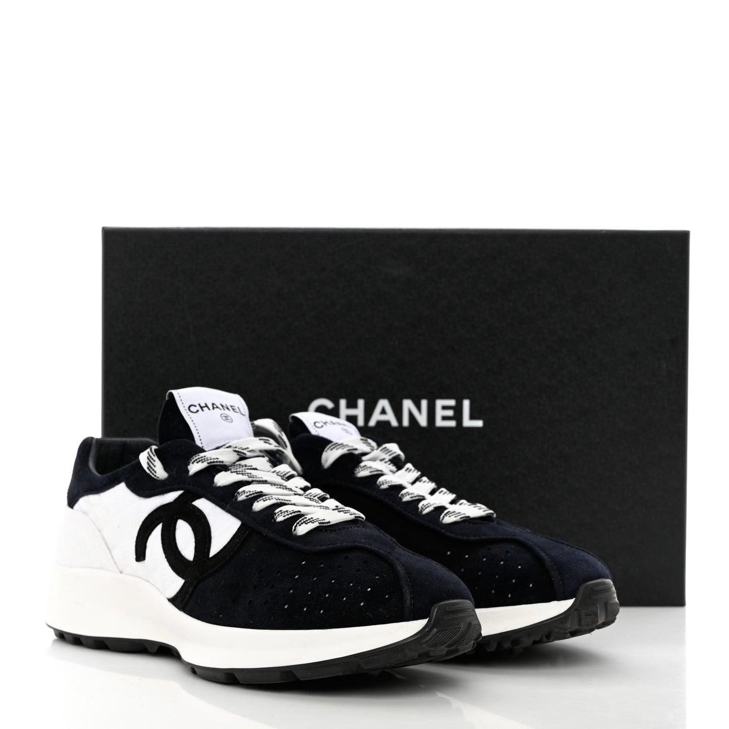 Chanel/ Accessories/ Shoes /Chanel Fabric Suede Kidskin CC Sneakers 40 Black White