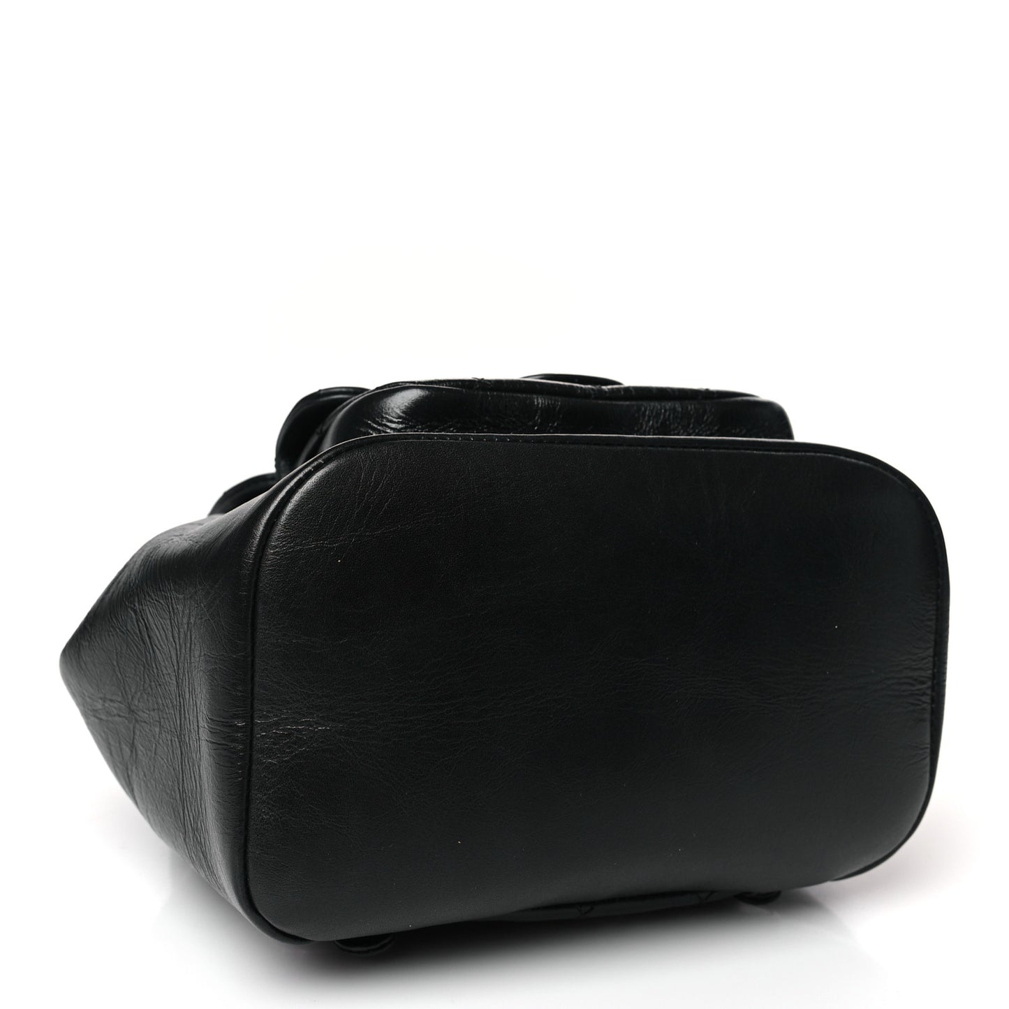 Glazed Aged Calfskin Quilted Small Duma Drawstring Backpack Black
