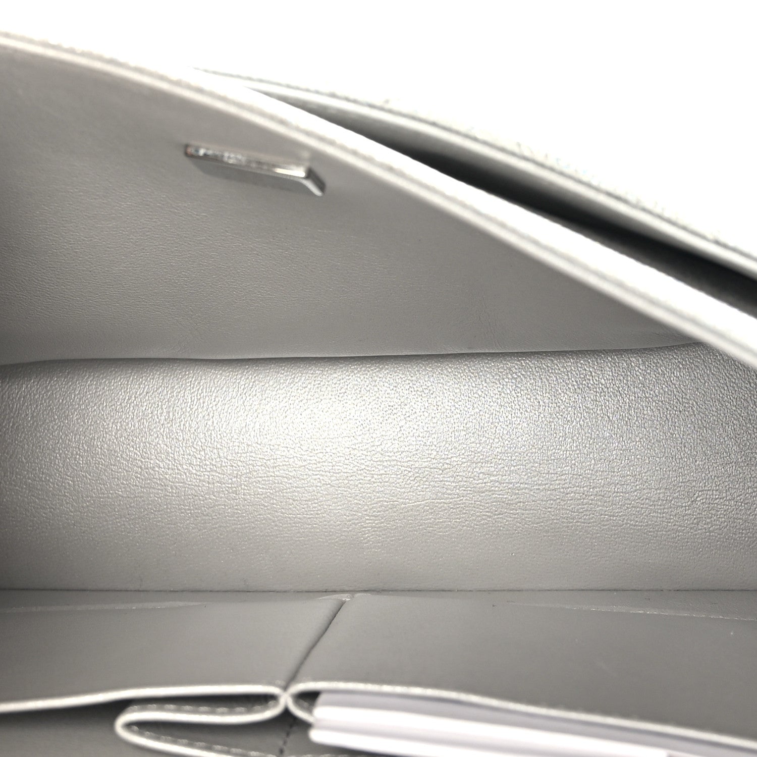 Glittered Metallic Caviar Quilted Medium Double Flap Silver