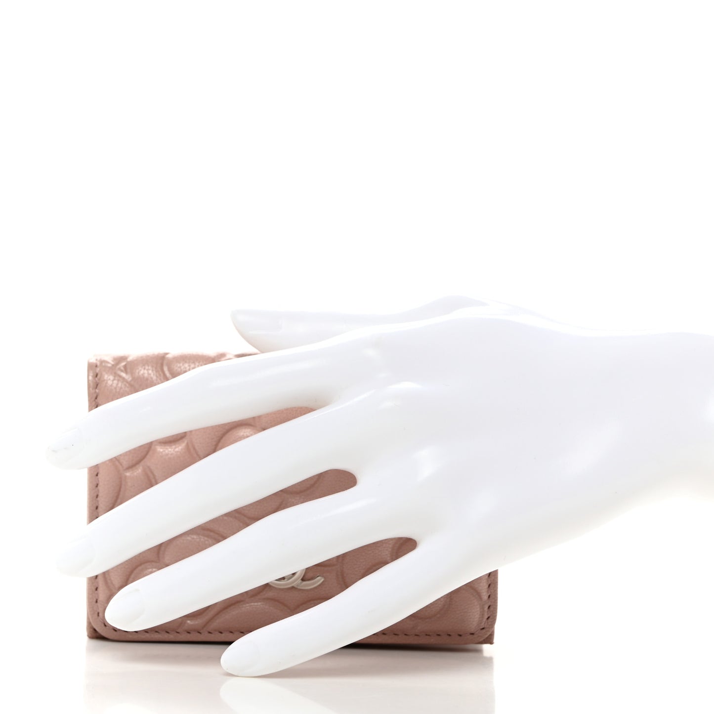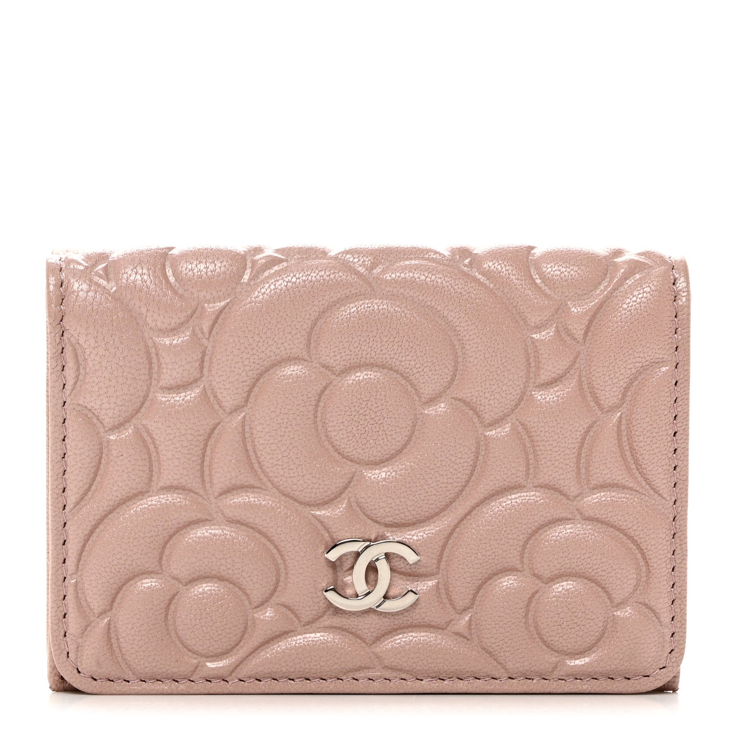 Chanel/ Accessories/ Wallets /Chanel Goatskin Camellia Embossed Compact Wallet Light Pink