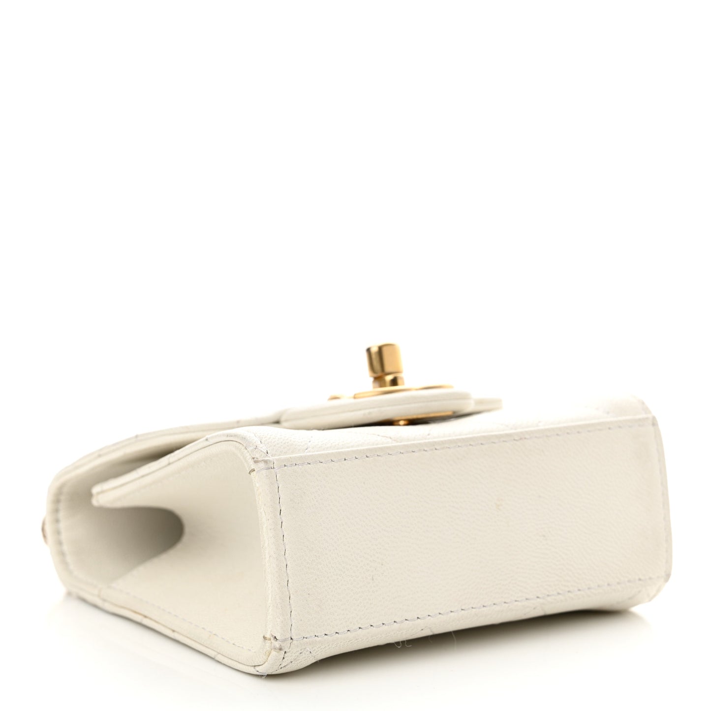 This is an authentic CHANEL Goatskin Chic Pearls Clutch On Chain in White. This stylish shoulder bag is crafted of diamond-quilted goatskin leather in white. The bag features a leather threaded aged gold chain strap, imitation pearls aligned on the top, and a flap with an aged gold classic CC turn lock.Follow this item for alerts. Chanel is a registered trademark of Chanel. FASHIONPHILE is not affiliated with Chanel.