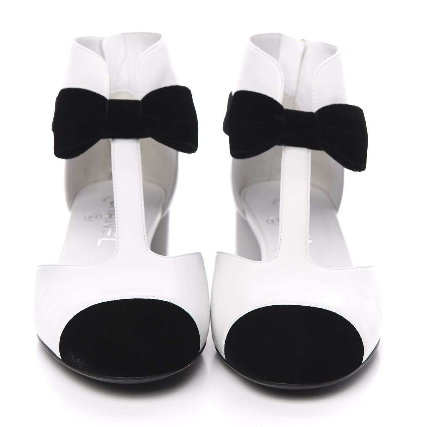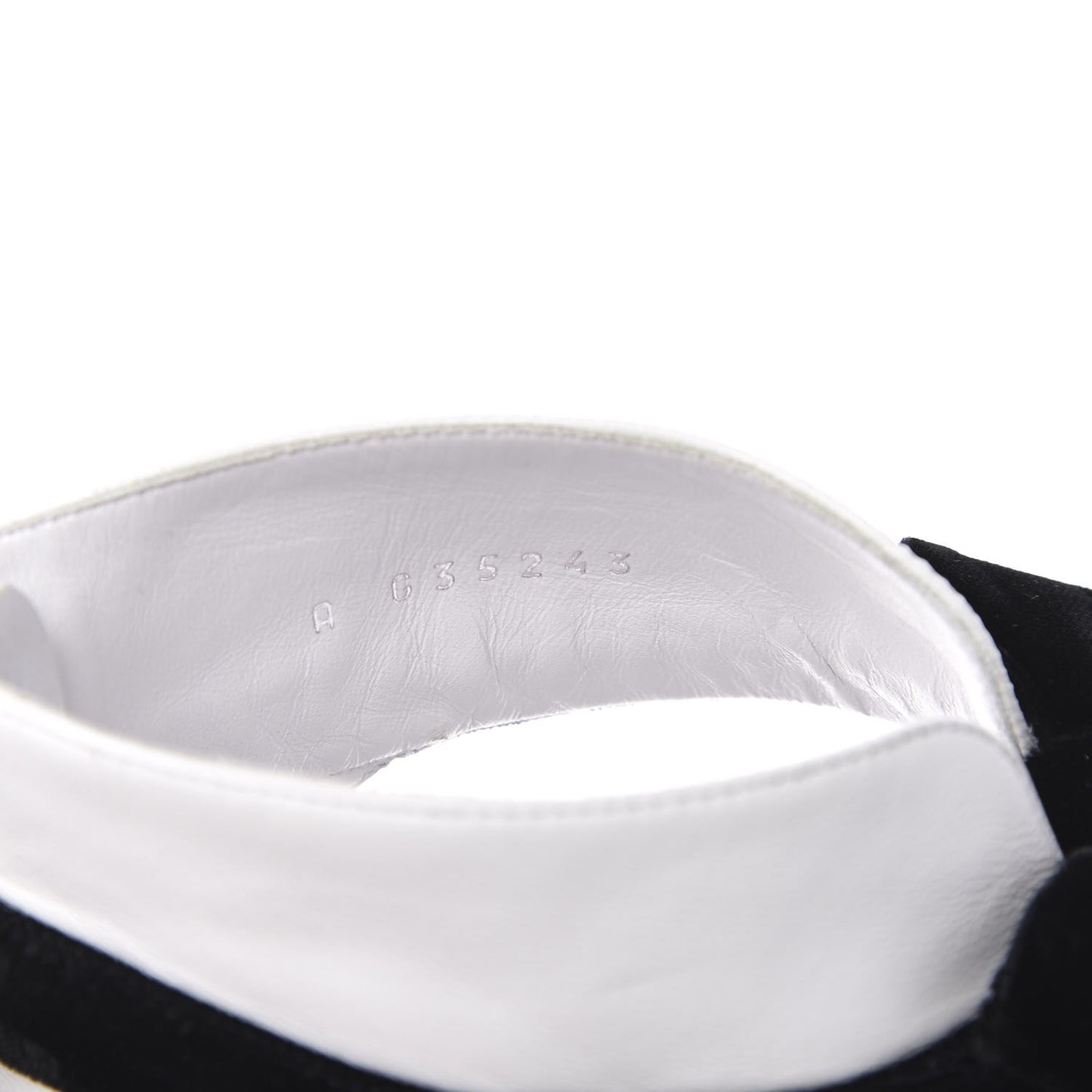Goatskin Velvet Cap Toe CC Bow Cut Out Ankle Boots 37.5 White Black