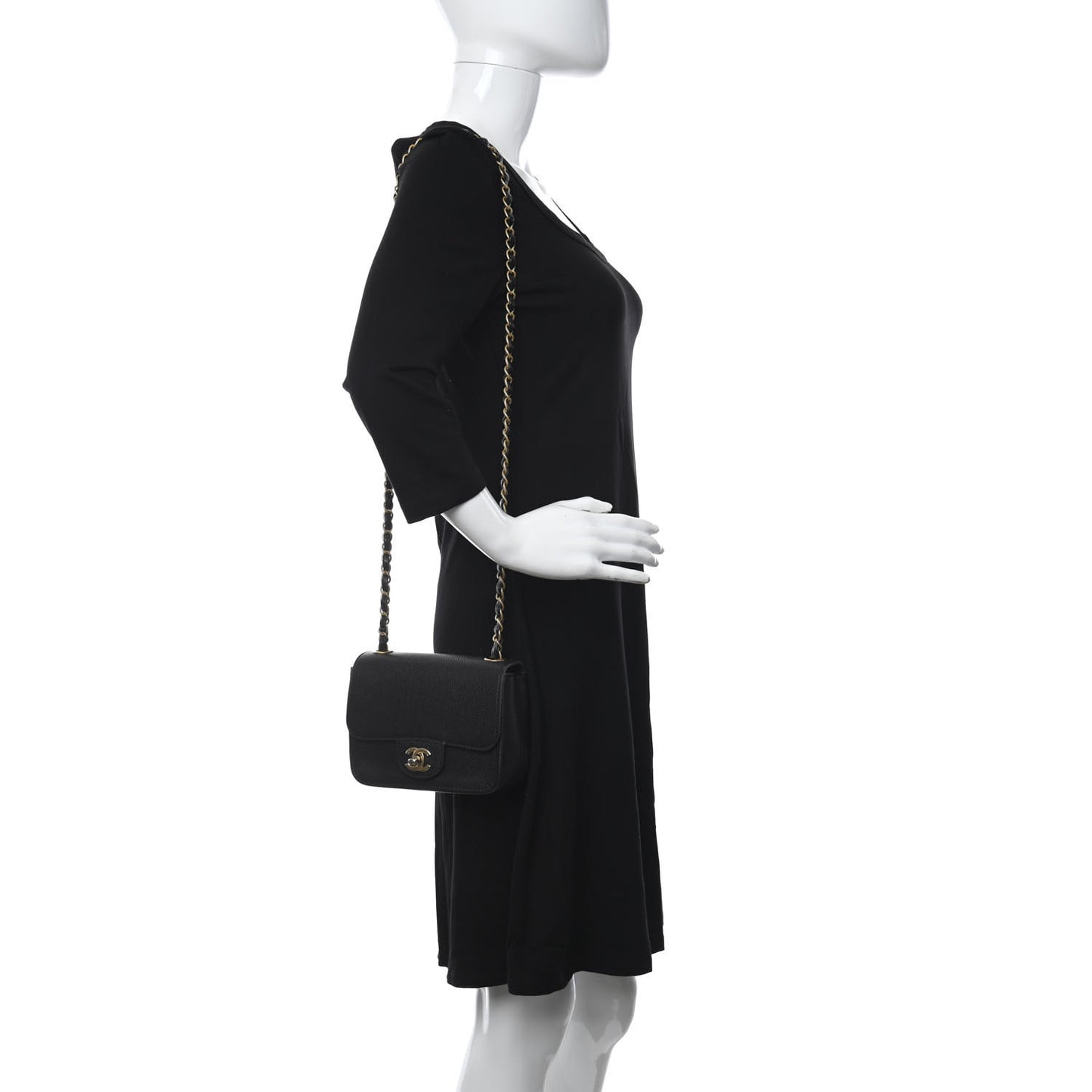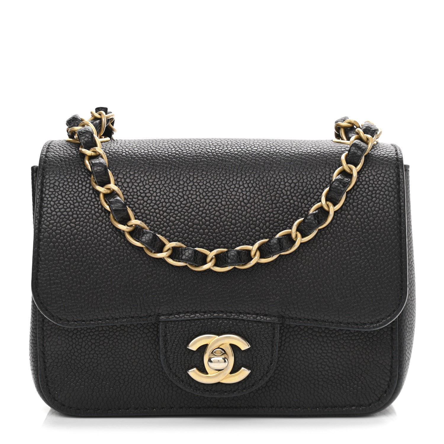Grained Calfskin Mini Square Classic Pure Flap Black