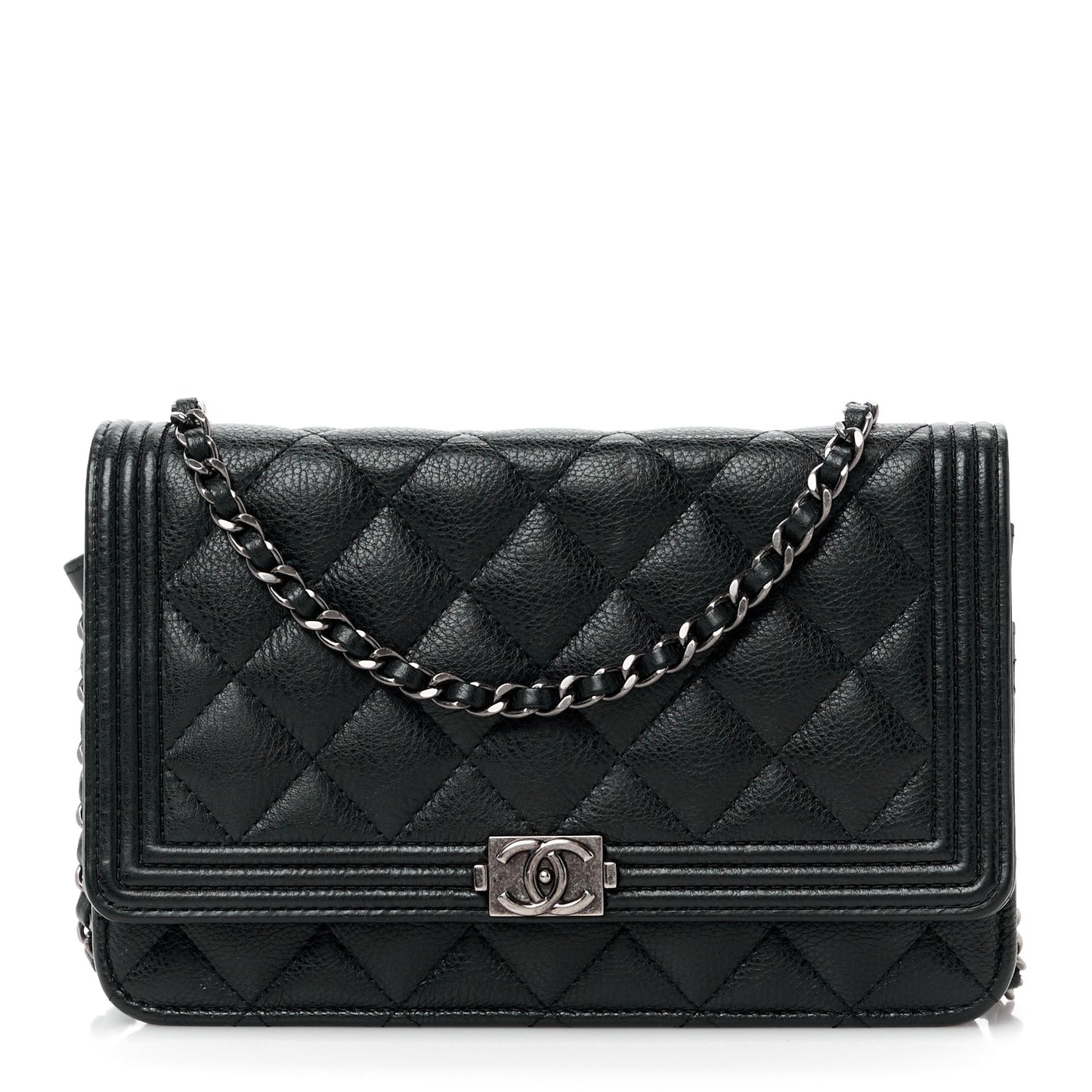 Grained Calfskin Quilted Boy Wallet On Chain WOC Black