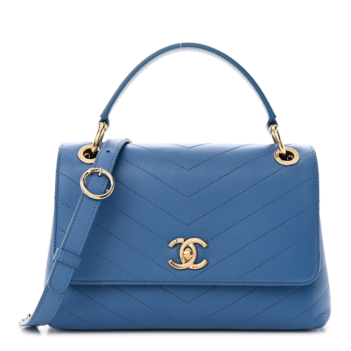 Grained Calfskin Small Chevron Chic Top Handle Flap Blue