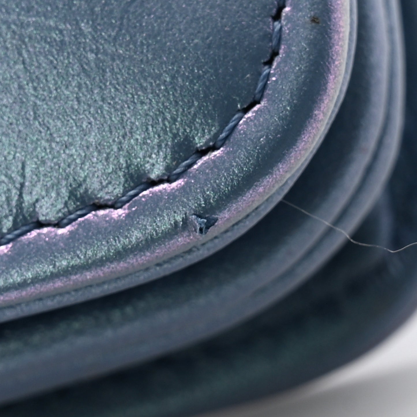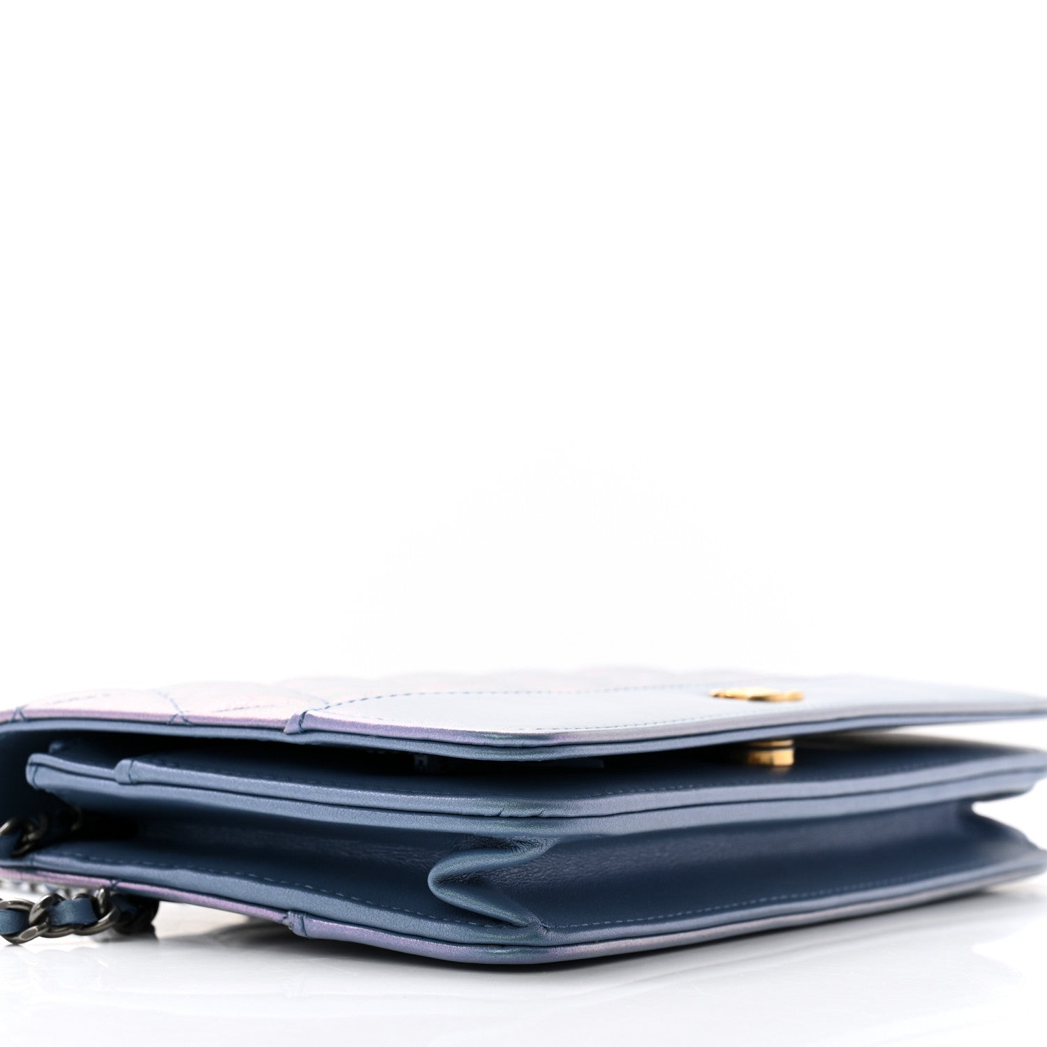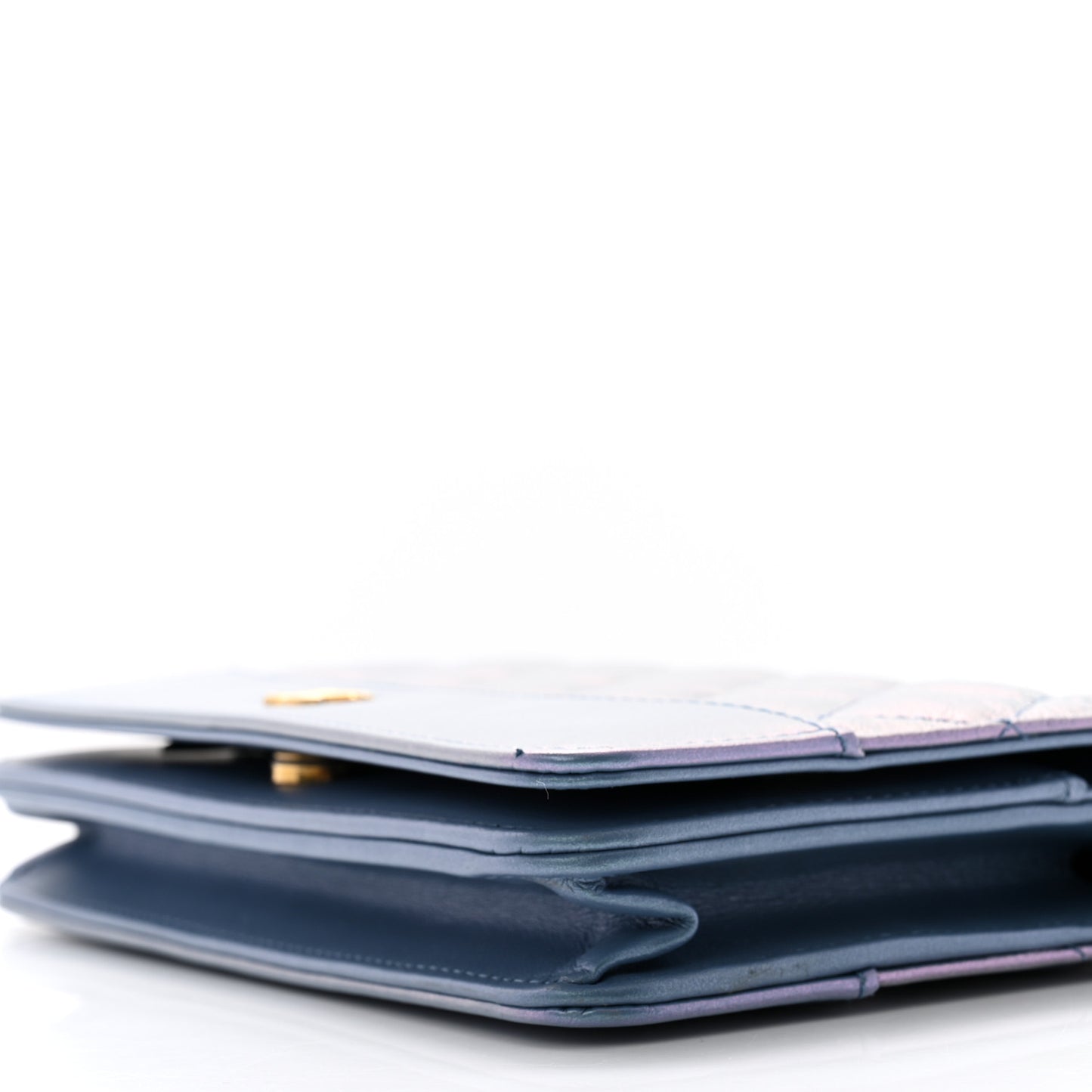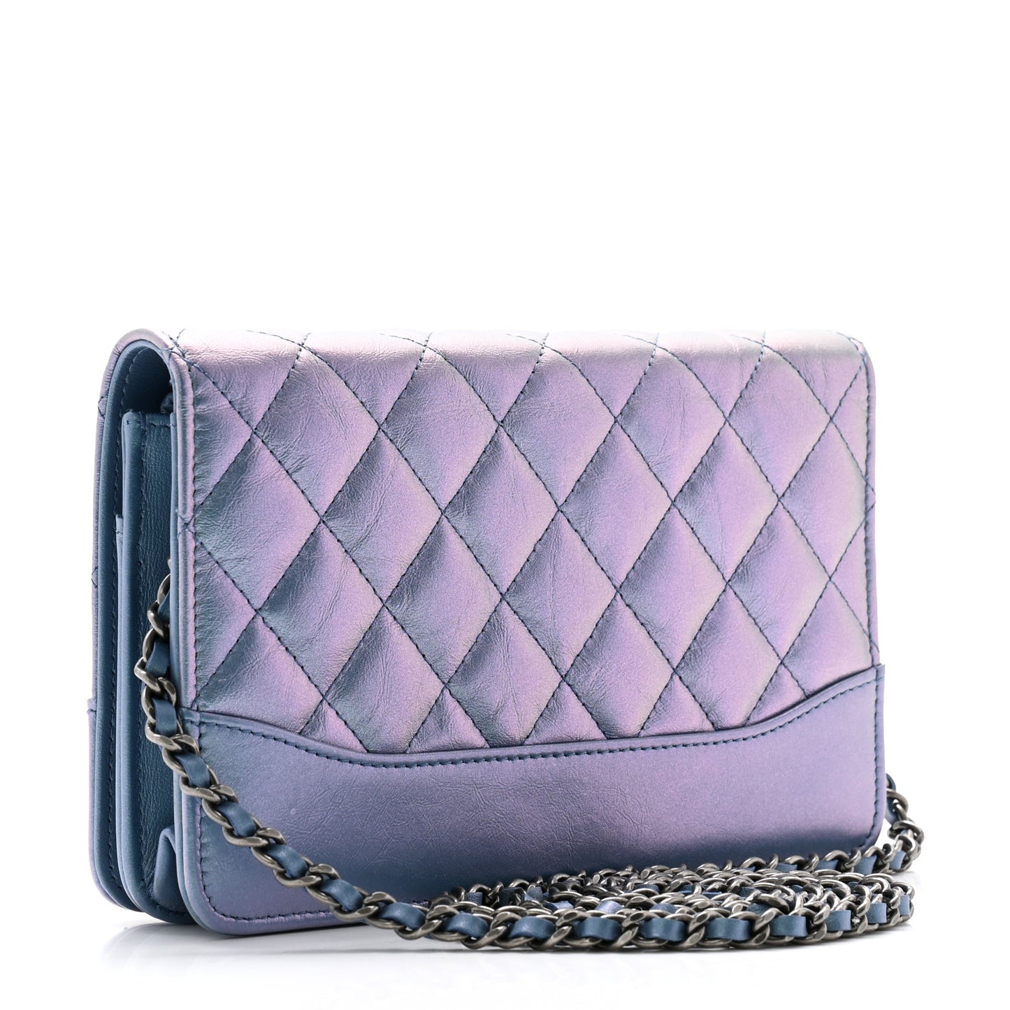 Iridescent Aged Calfskin Quilted Gabrielle Wallet On Chain WOC Blue