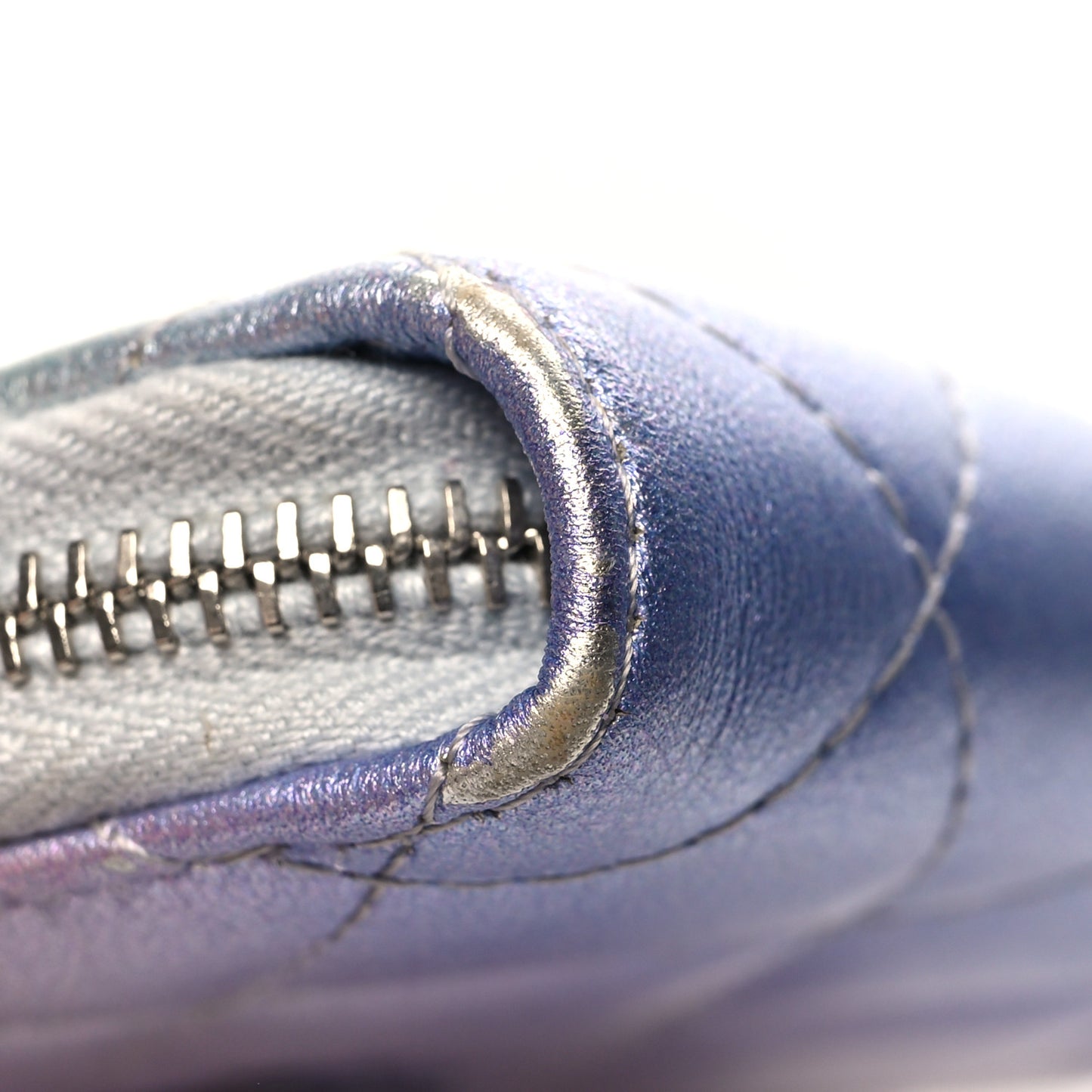 Iridescent Calfskin Quilted Zip Coin Purse Wallet Light Blue