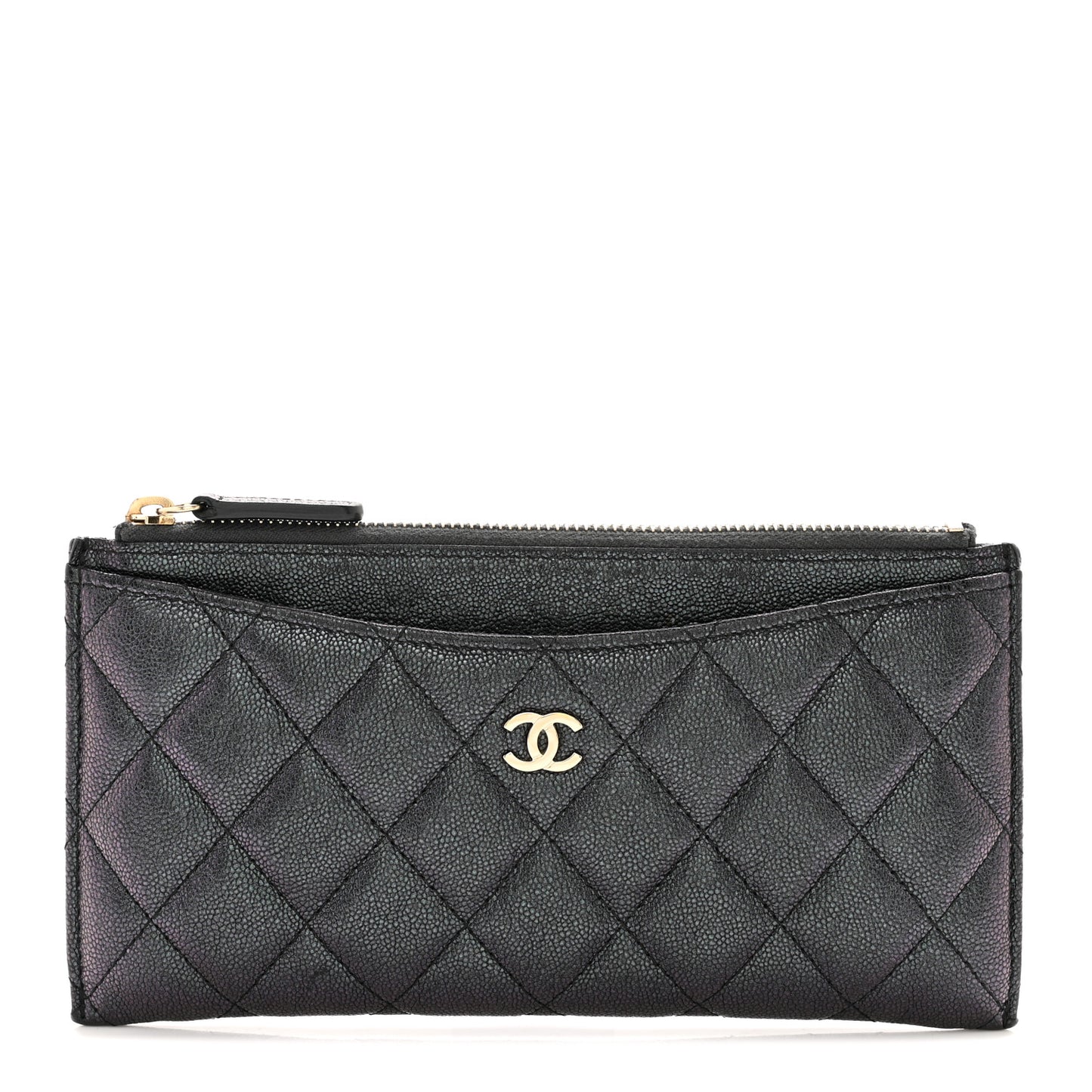 This is an authentic CHANEL Iridescent Caviar Quilted Classic Zip Pouch Black. This chic wallet is crafted of diamond quilted caviar leather in black. This pouch features a silver Chanel CC logo, an exterior pocket with card slots and a top zipper that opens to a black fabric interior.Follow this item for alerts. Chanel is a registered trademark of Chanel. FASHIONPHILE is not affiliated with Chanel.
