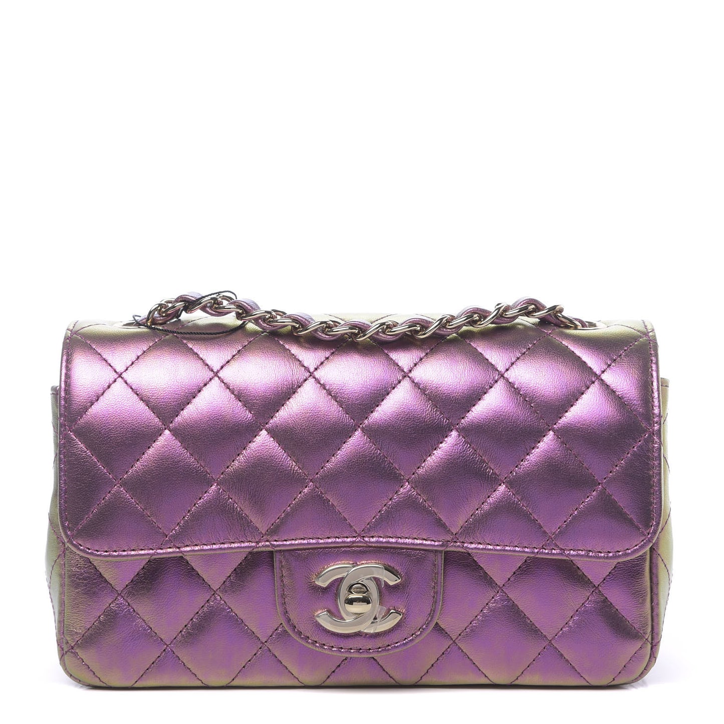 Chanel/ Bags/ Shoulder Bags /Chanel Iridescent Lambskin Quilted Mini Rectangular Flap Purple