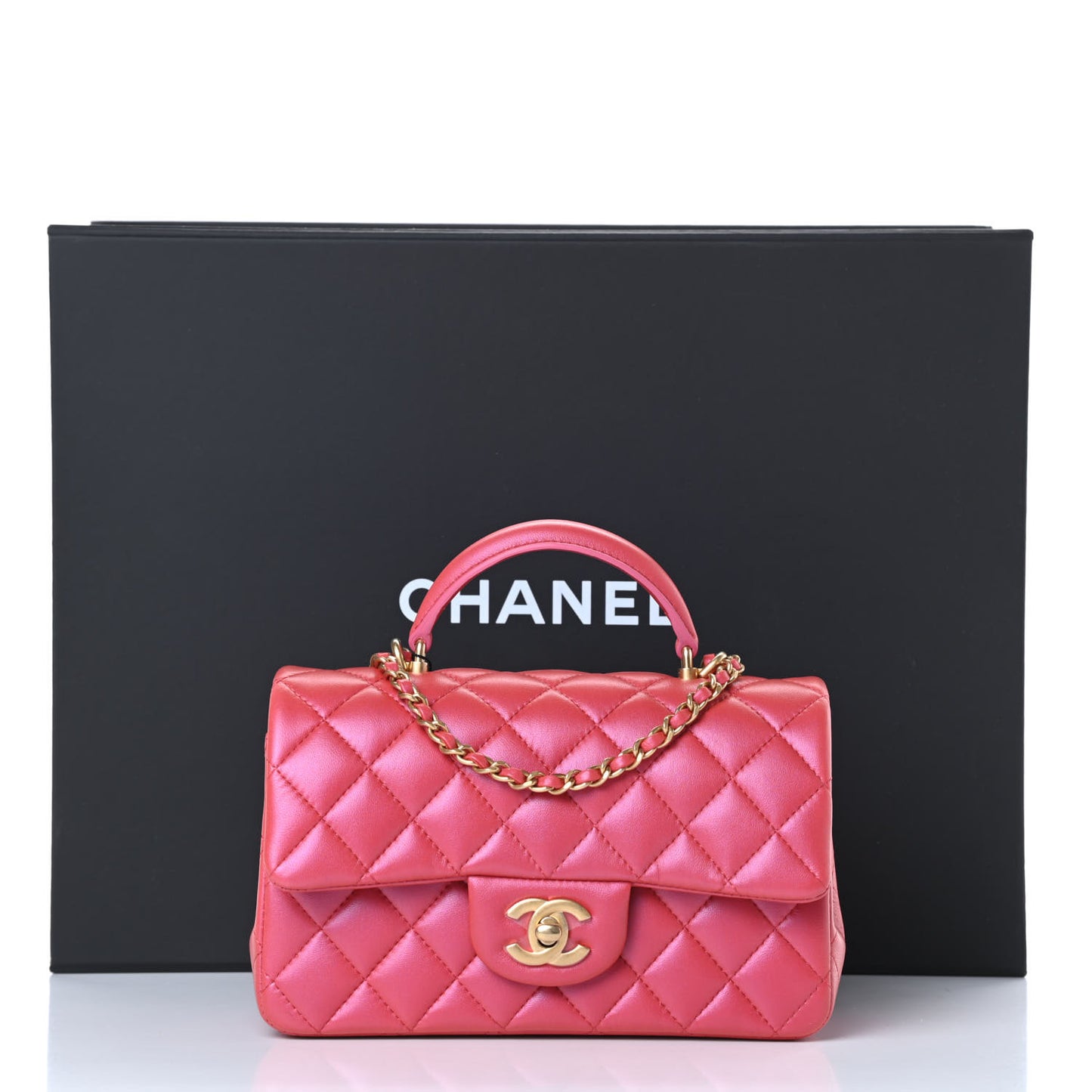Chanel/ Bags/ Shoulder Bags /Chanel Iridescent Lambskin Quilted Mini Top Handle Rectangular Flap Red