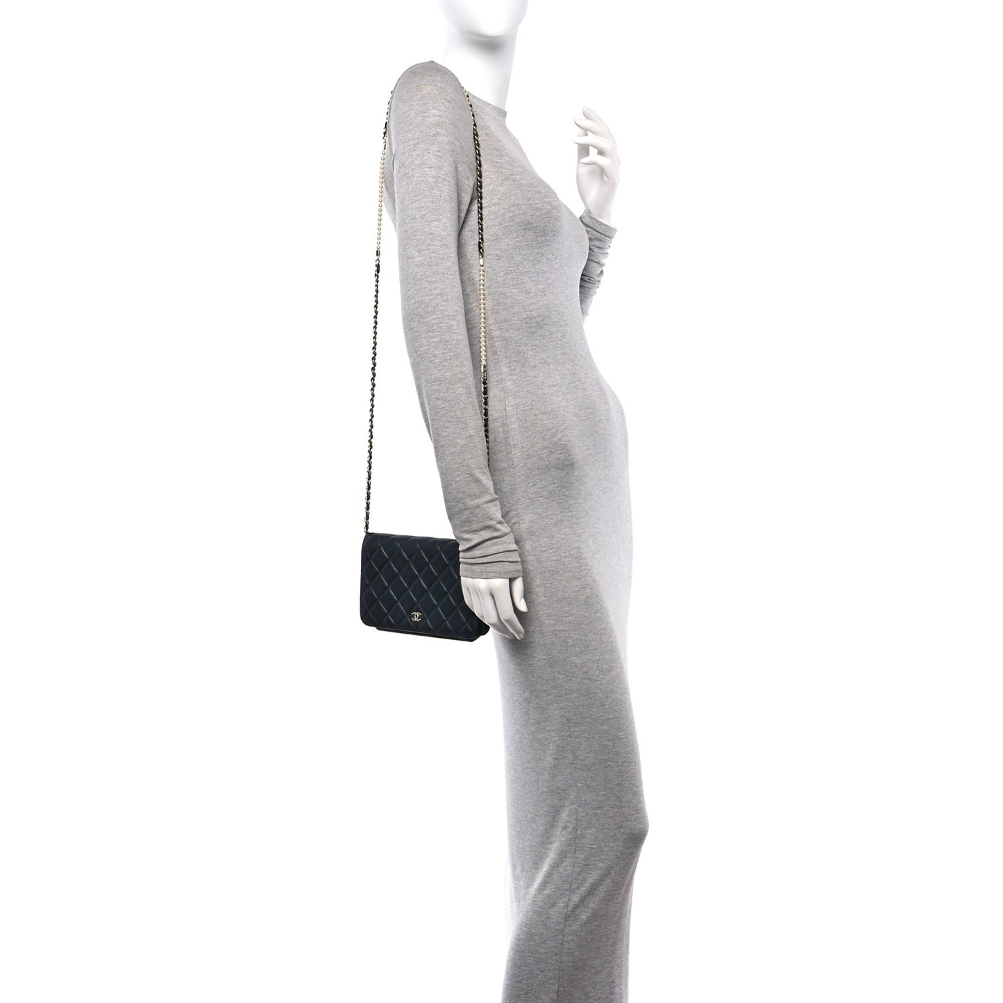 Chanel/ Bags/ Wallet Style /Chanel Iridescent Lambskin Quilted Pearl Wallet On Chain WOC Black