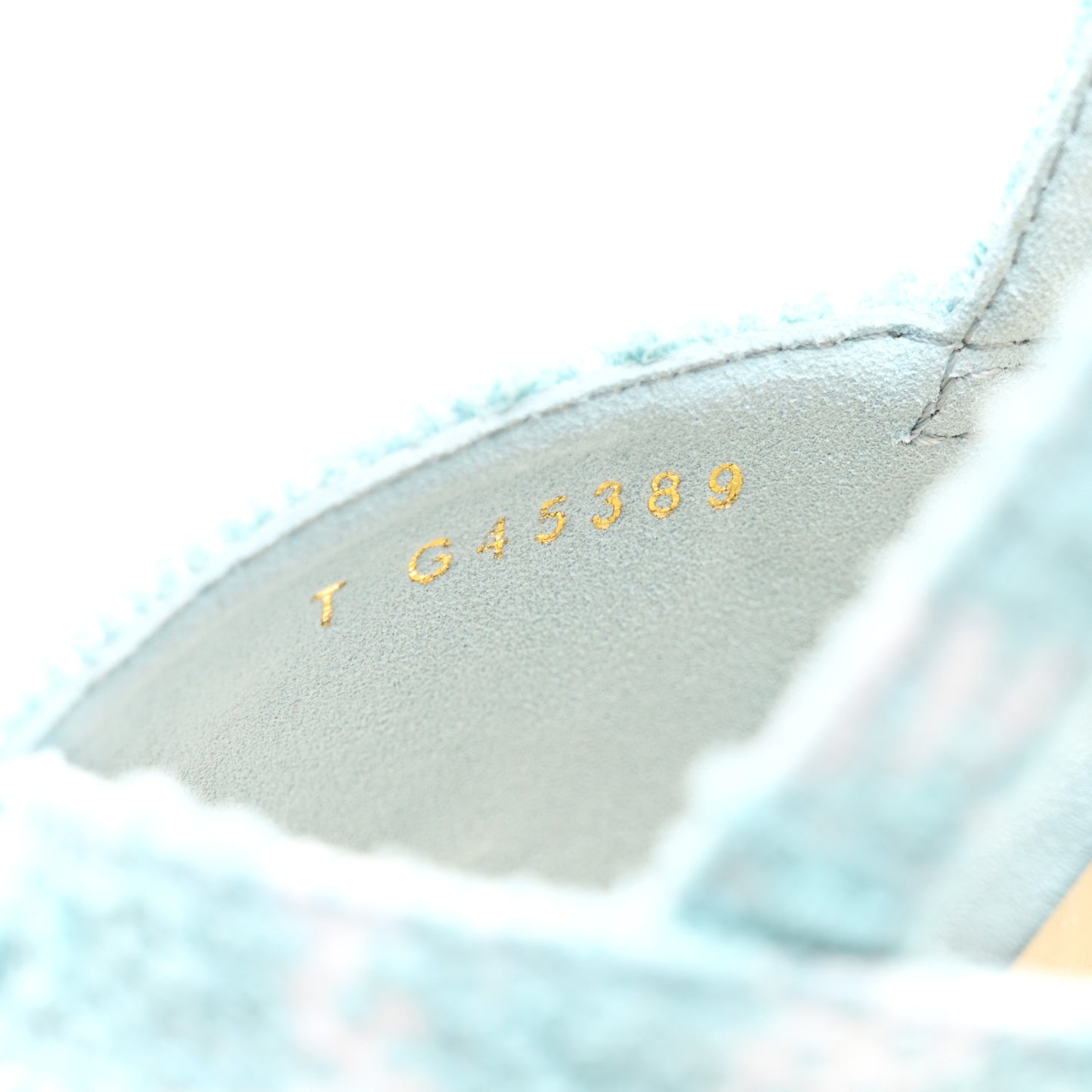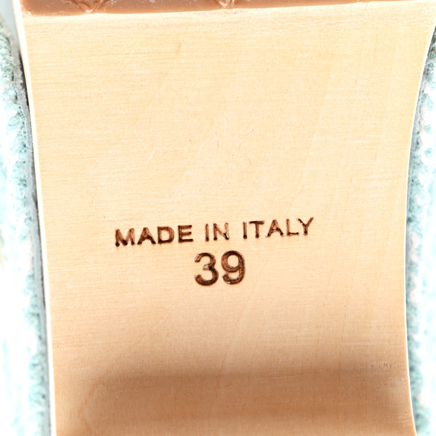 Chanel/ Accessories/ Shoes /Chanel Jacquard Studded Slingback Clog Sandals 39 Turquoise White