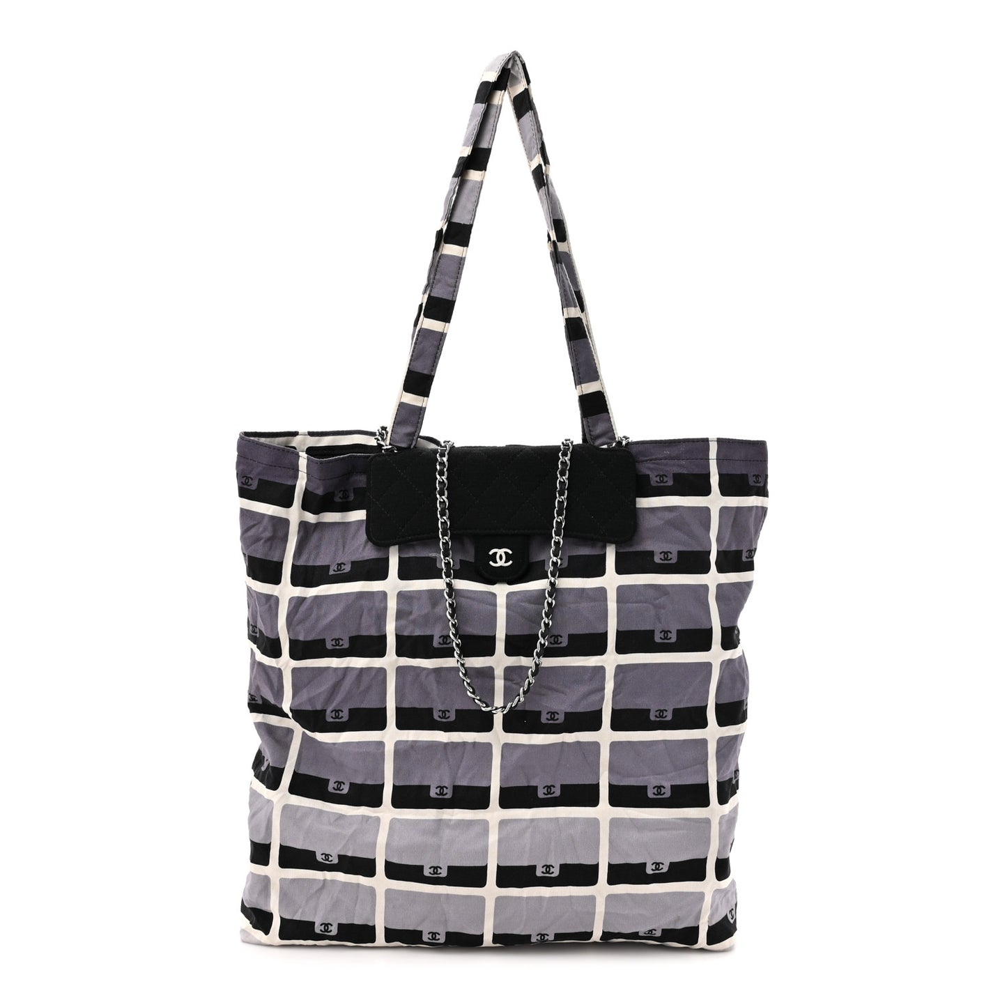 Jersey Fabric Quilted Foldable Tote With Chain Black Multicolor