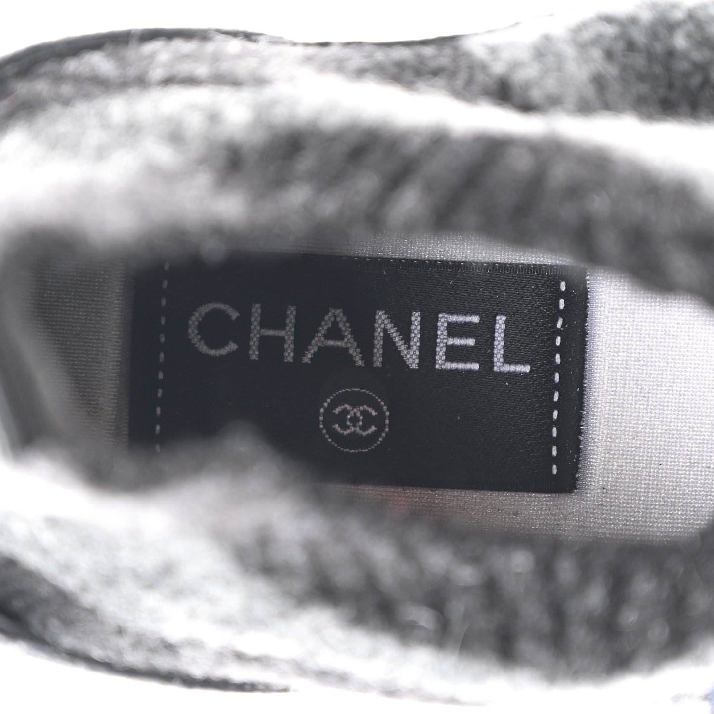 Chanel/ Accessories/ Shoes /Chanel Knit Fabric Suede Calfskin Womens CC Sneakers 36.5 Grey Black