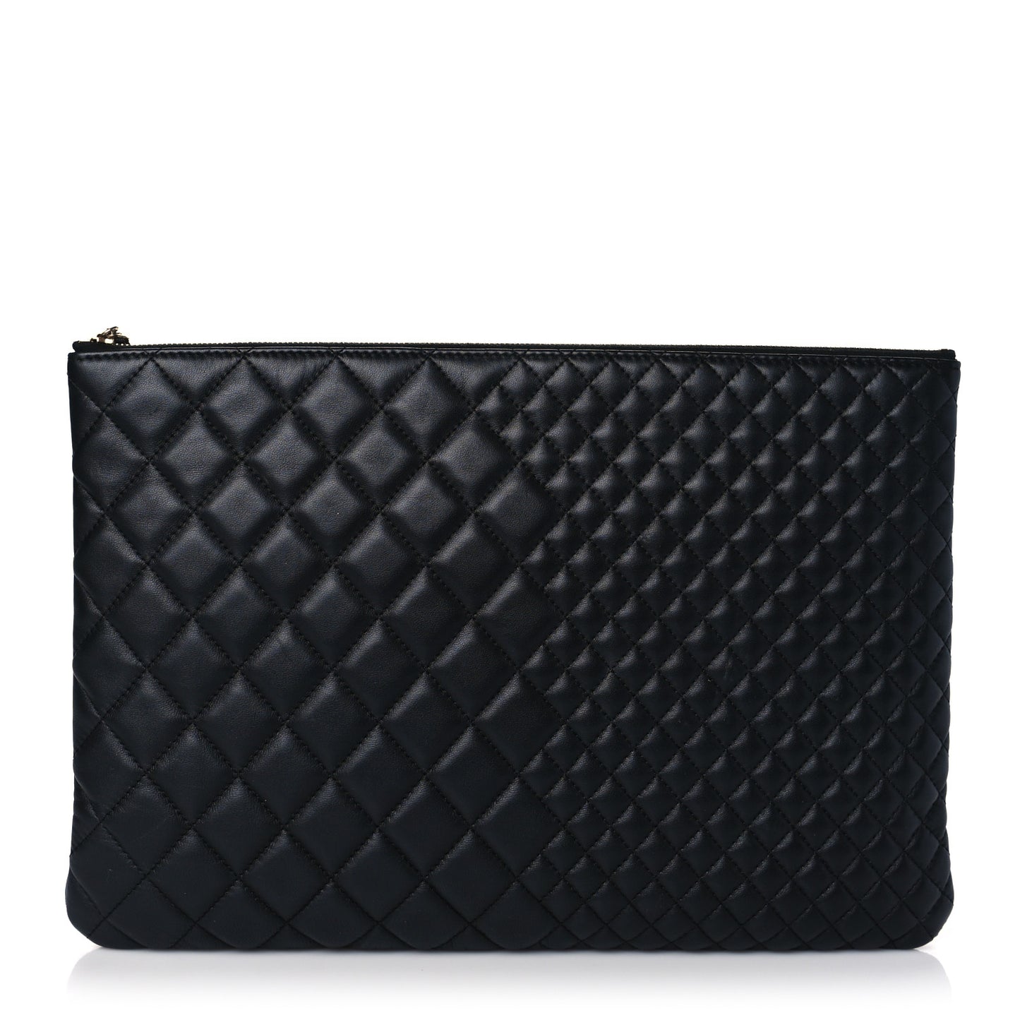 This is an authentic CHANEL Lambskin Bi Quilted Large Cosmetic Case in Black. This large-sized cosmetics case is crafted of padded diamond quilted lambskin leather in black. The pouch features a top zipper that opens to a black interior.Follow this item for alerts. Chanel is a registered trademark of Chanel. FASHIONPHILE is not affiliated with Chanel.