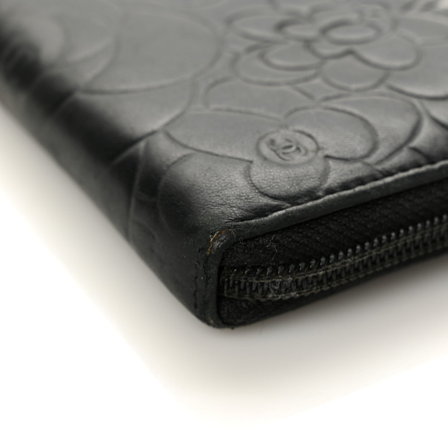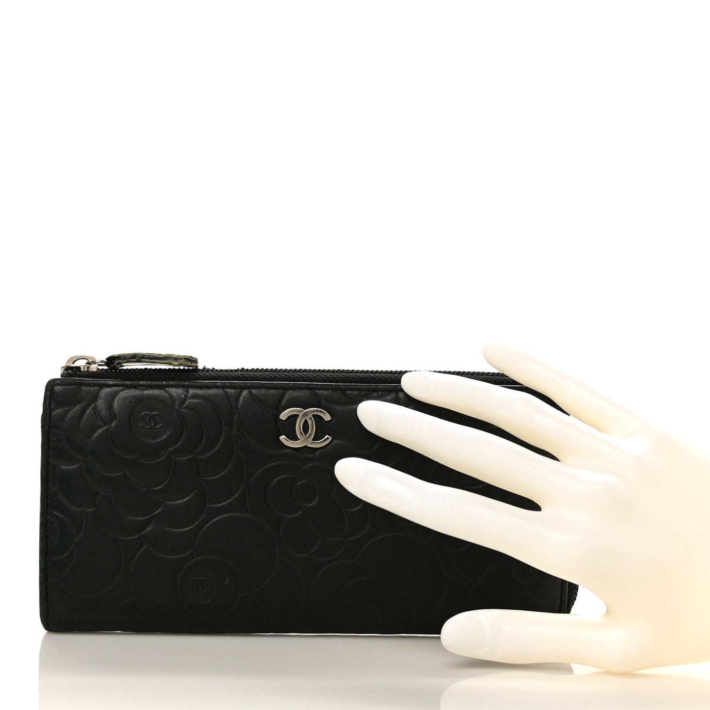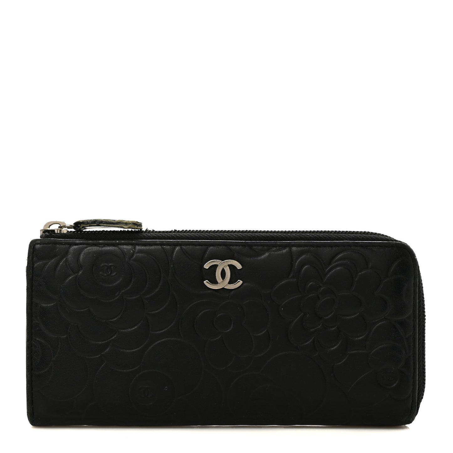 Chanel/ Accessories/ Wallets /Chanel Lambskin Camellia Embossed Zipped Gusset Wallet Black