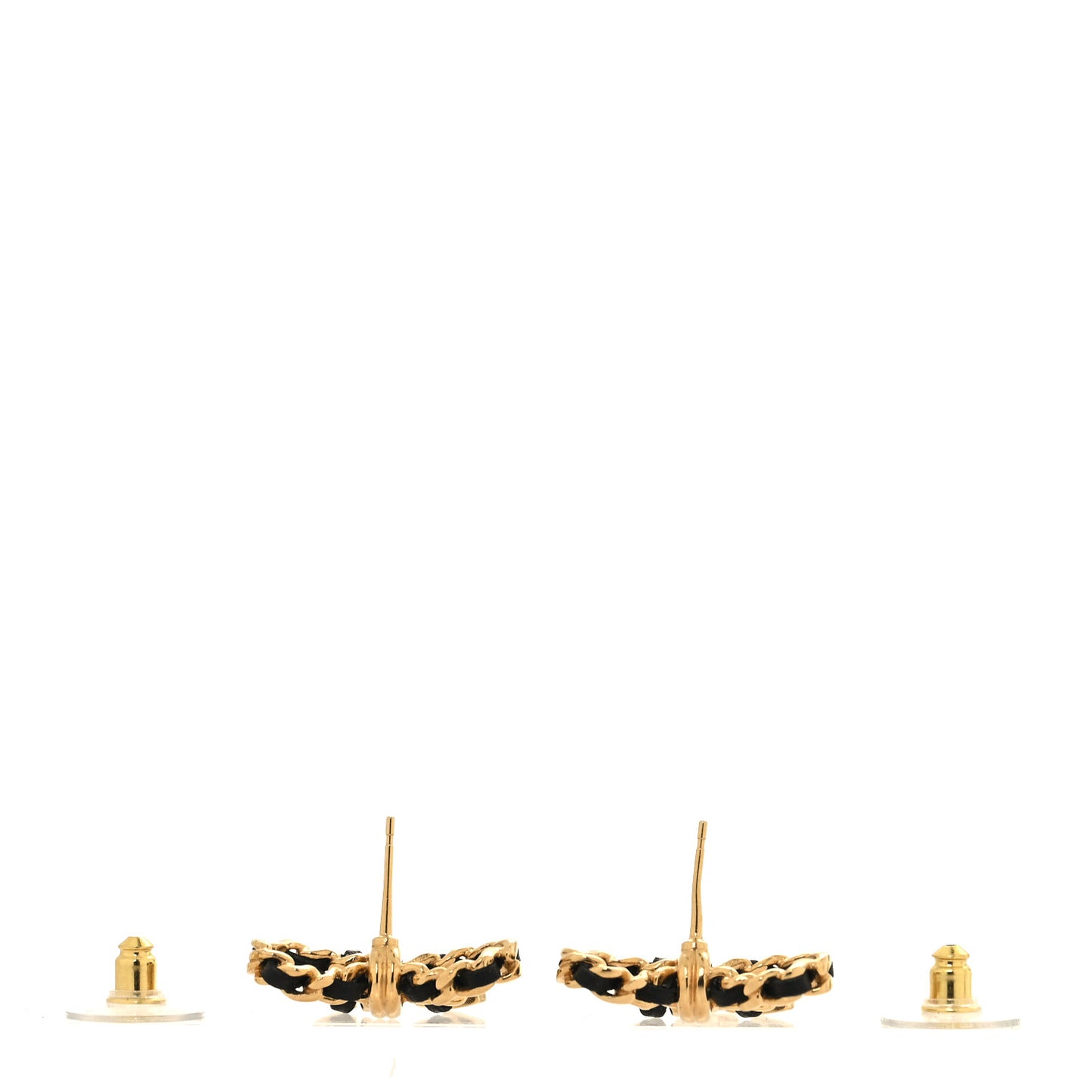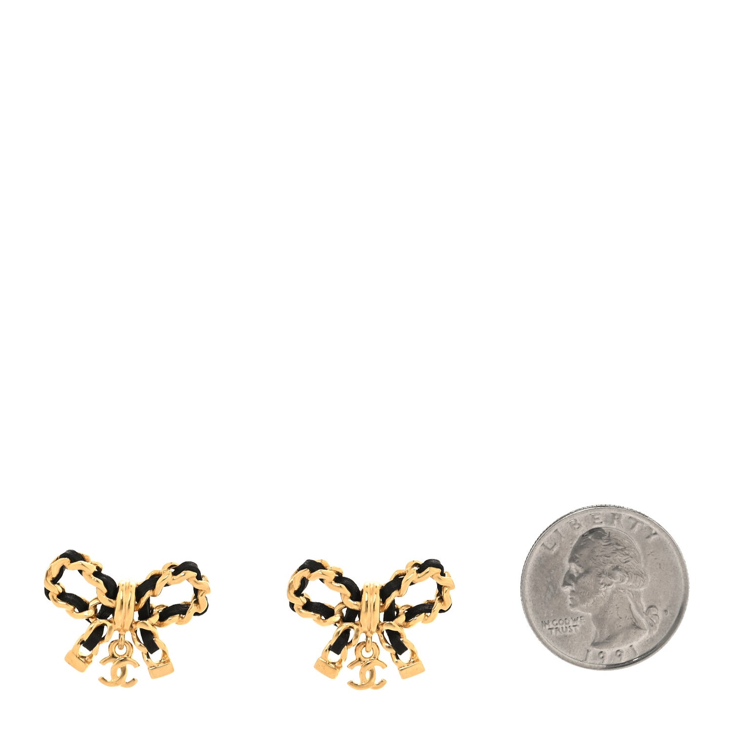Chanel/ Jewelry/ Earrings /Chanel Lambskin Chain Bow Stud Earrings Black Gold