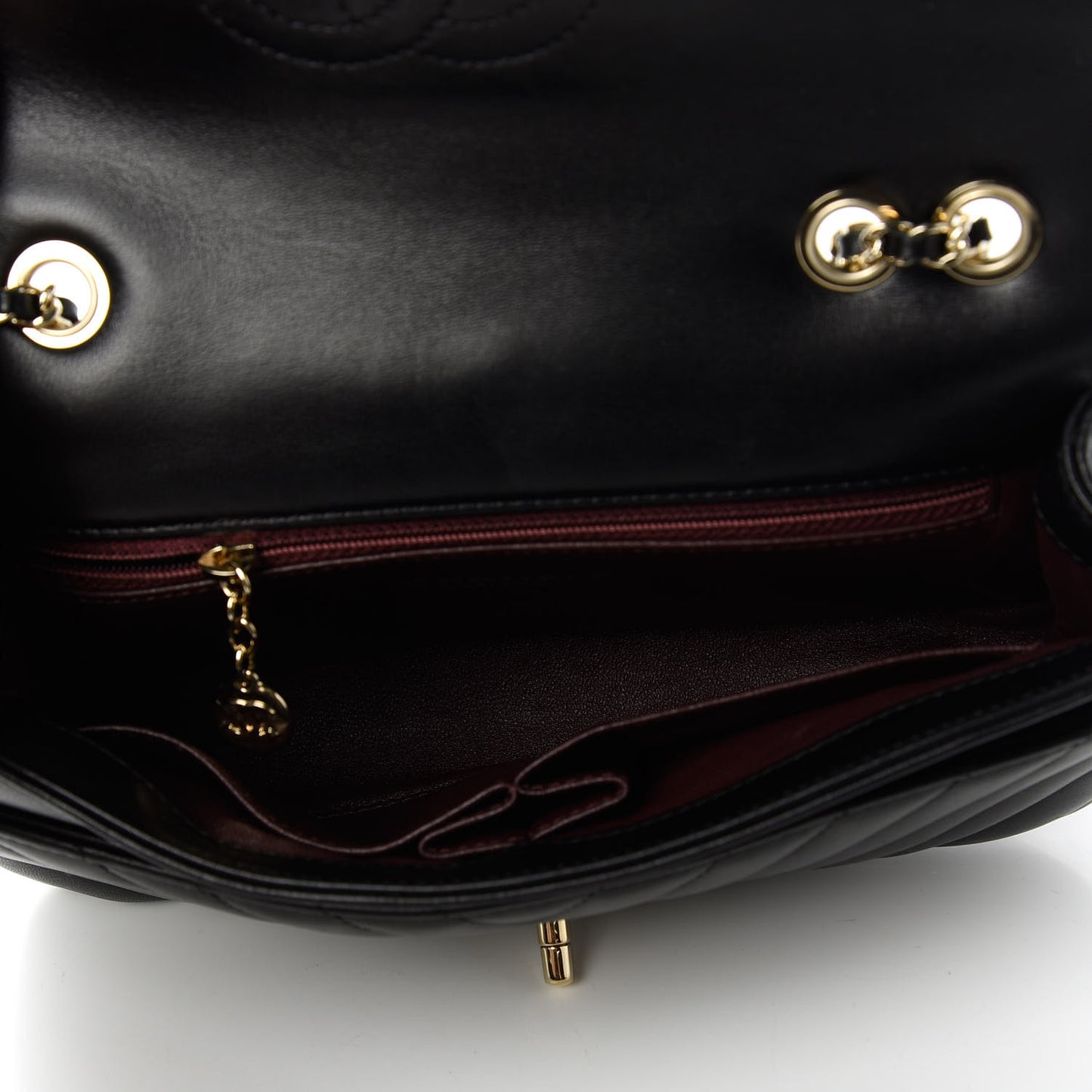 Lambskin Chevron Quilted Mini Rectangular Flap Black
