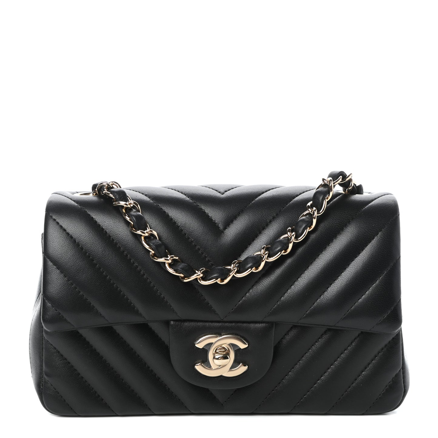 Chanel/ Bags/ Shoulder Bags /Chanel Lambskin Chevron Quilted Mini Rectangular Flap Black