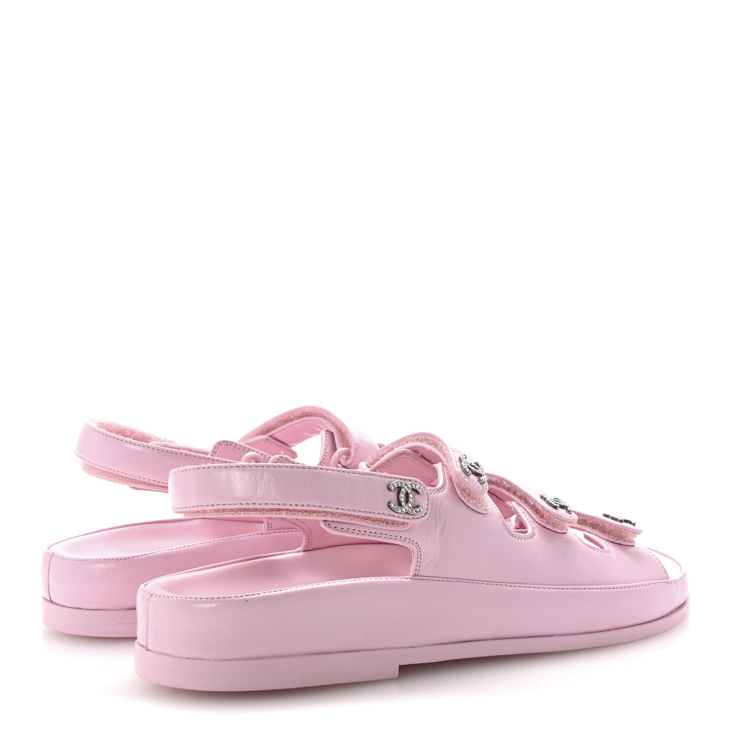Lambskin Crystal CC Velcro Dad Sandals 36.5 Light Pink