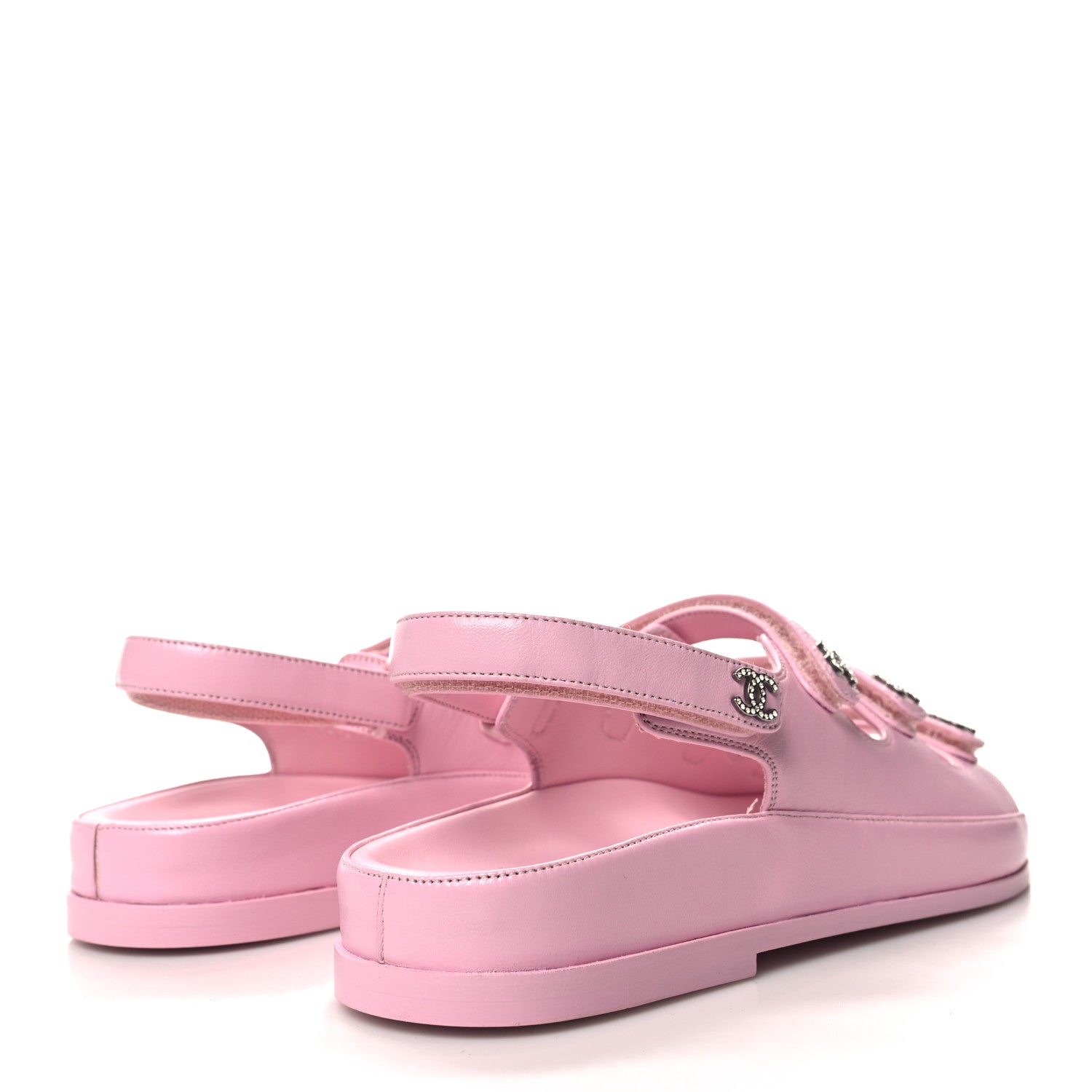 Chanel/ Accessories/ Shoes /Chanel Lambskin Crystal CC Velcro Dad Sandals 38 LightPink