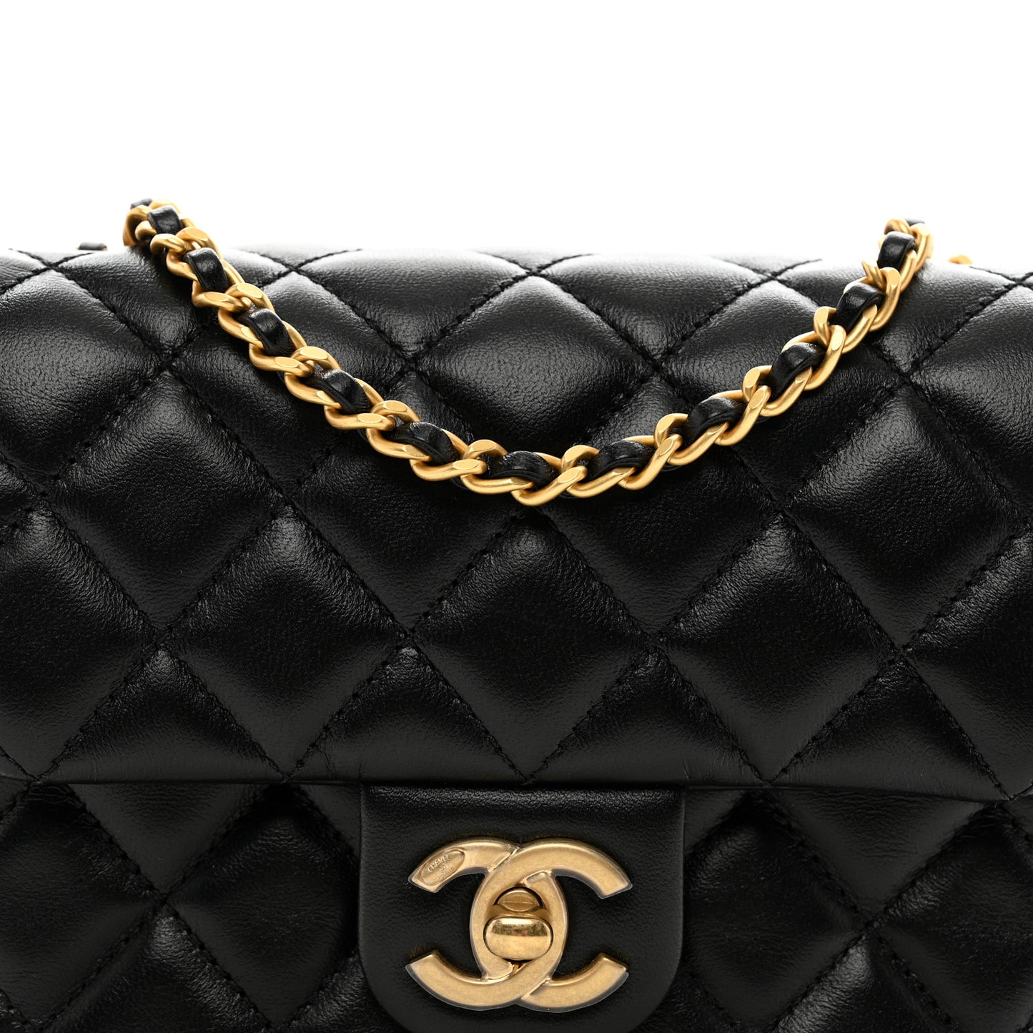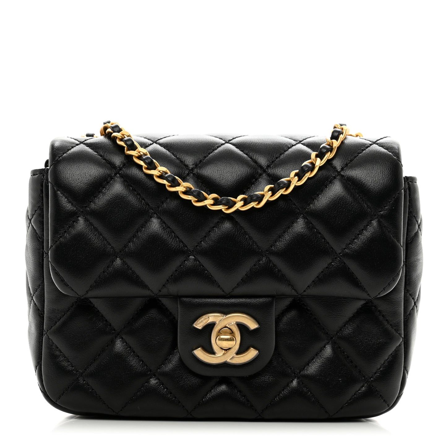 Chanel/ Bags/ Shoulder Bags /Chanel Lambskin Enamel Quilted Mini Coco Hearts Square Flap Black