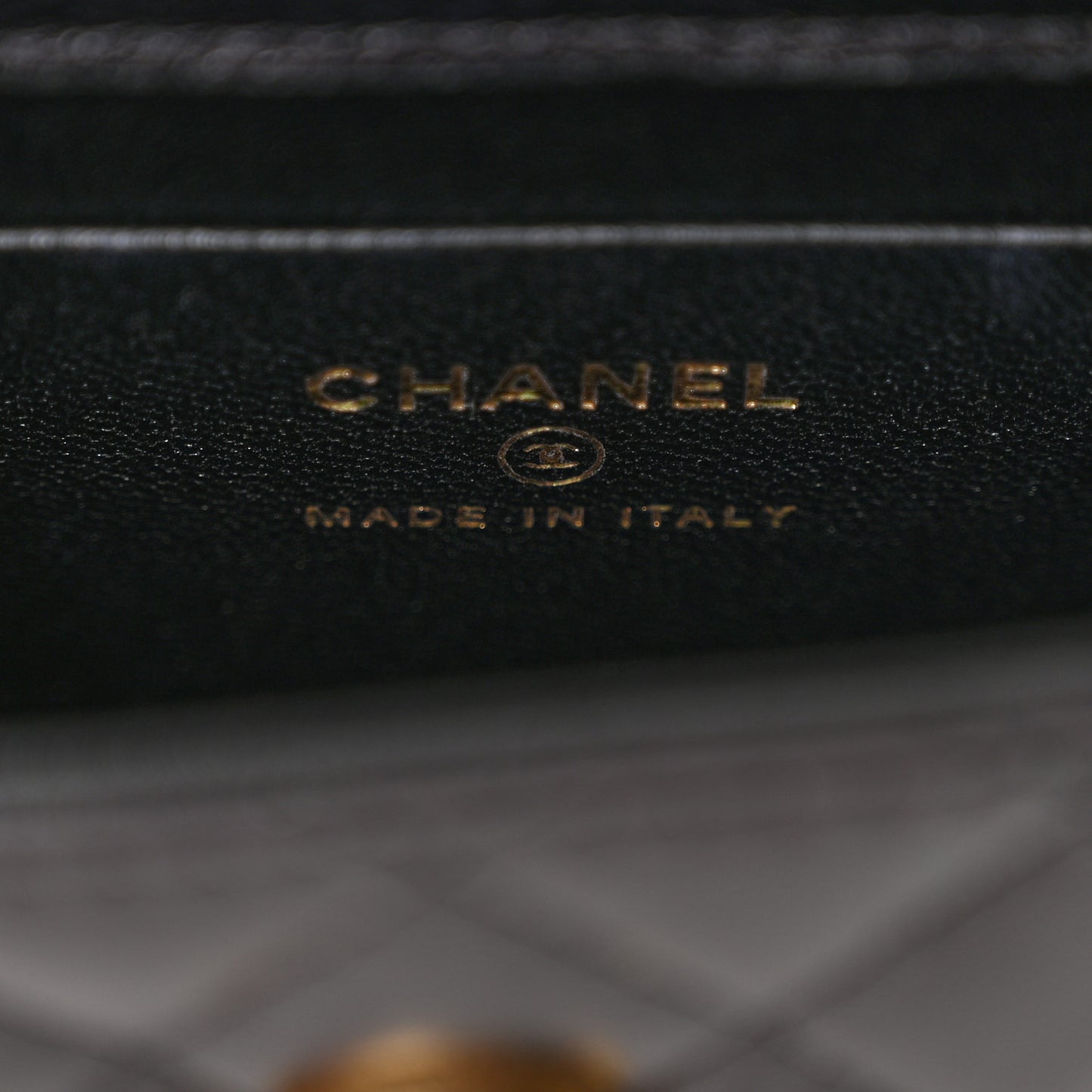 Chanel/ Bags/ Shoulder Bags /Chanel Lambskin Enamel Quilted Mini Top Handle Flap Black