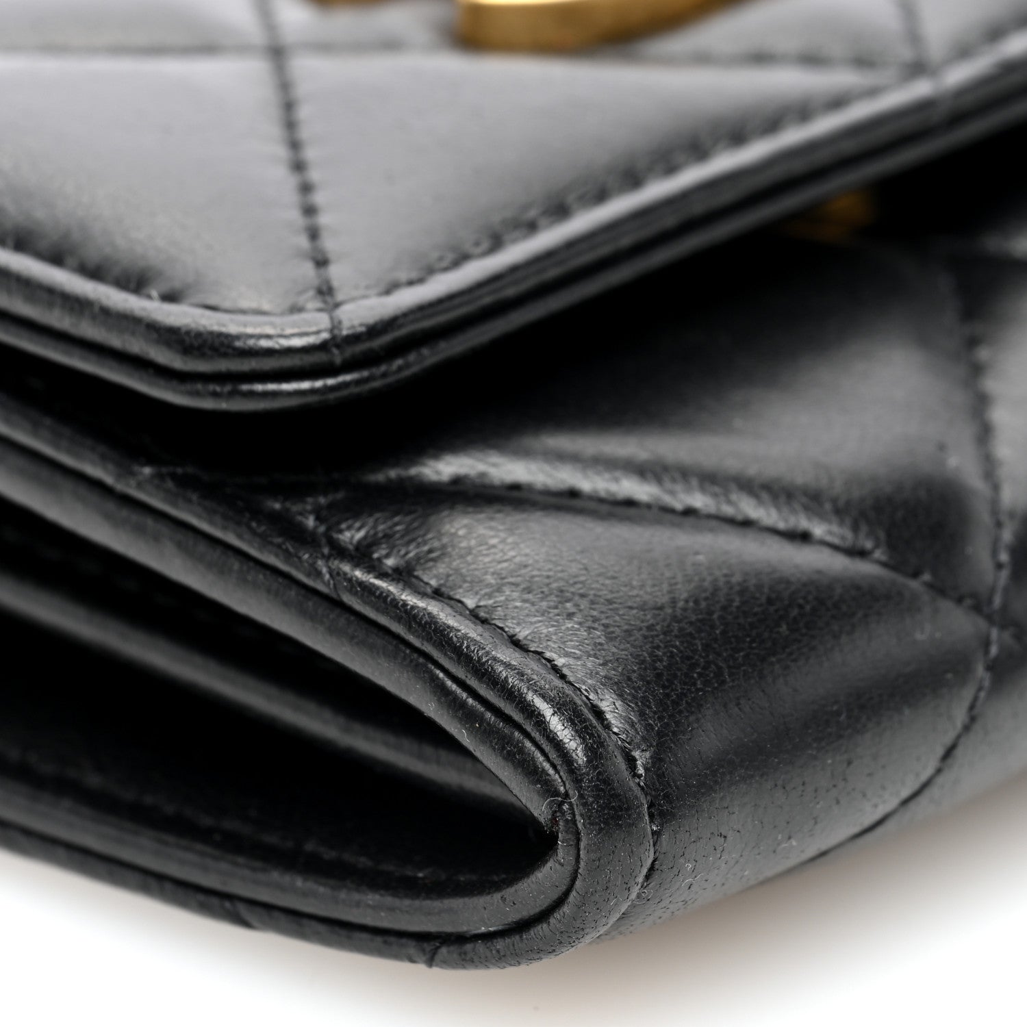 Lambskin Enamel Quilted Pending CC Card Holder On Chain Black