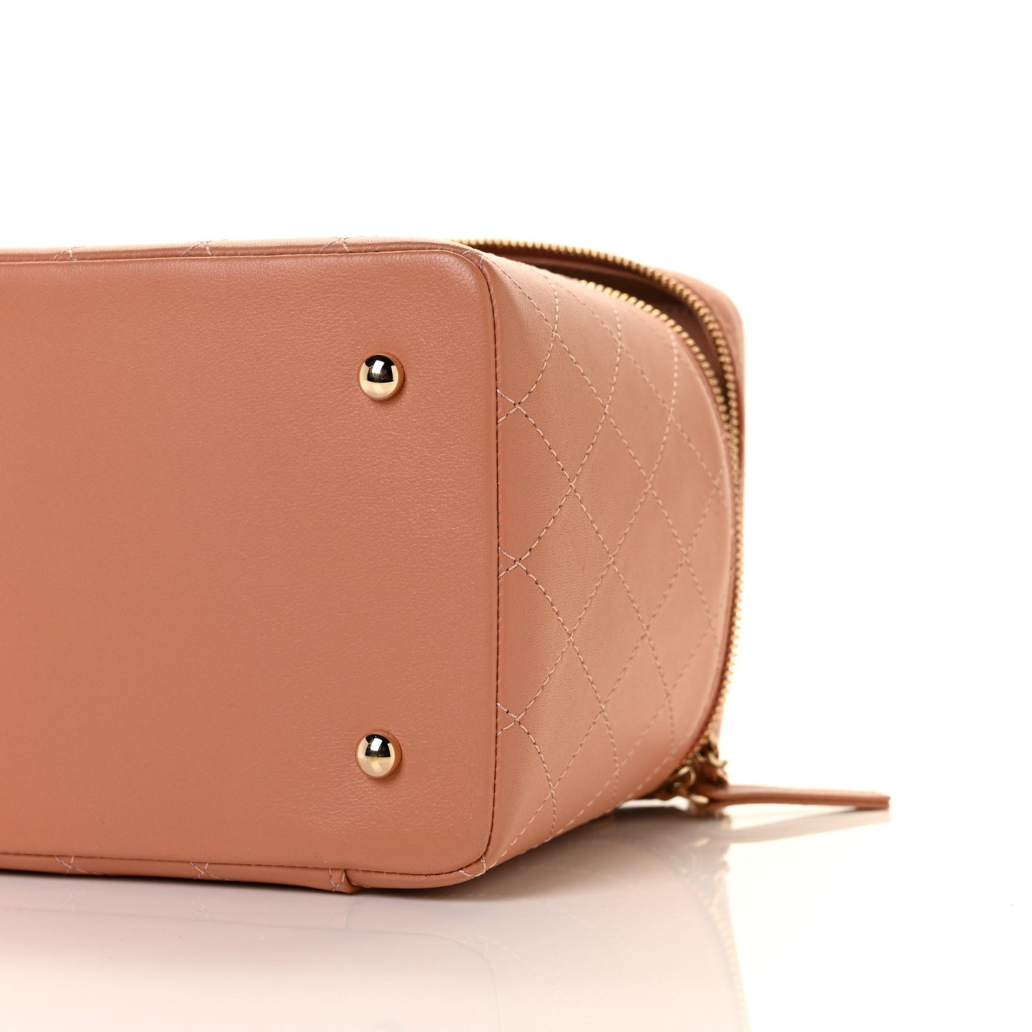 Chanel/ Bags/ Travel & Luggage /Chanel Lambskin Flat Quilted Knock On Wood Large Vanity Case Beige