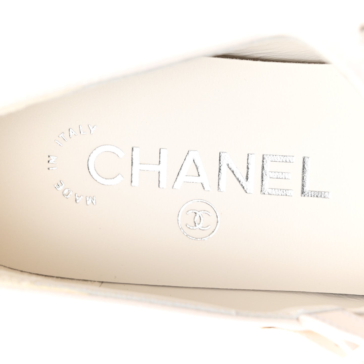 Chanel/ Accessories/ Shoes /Chanel Lambskin Grosgrain Pearl Mary Jane Flats 37 White Black