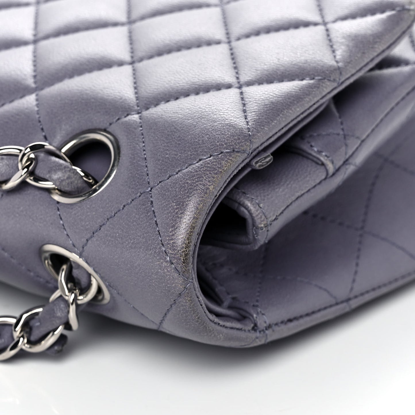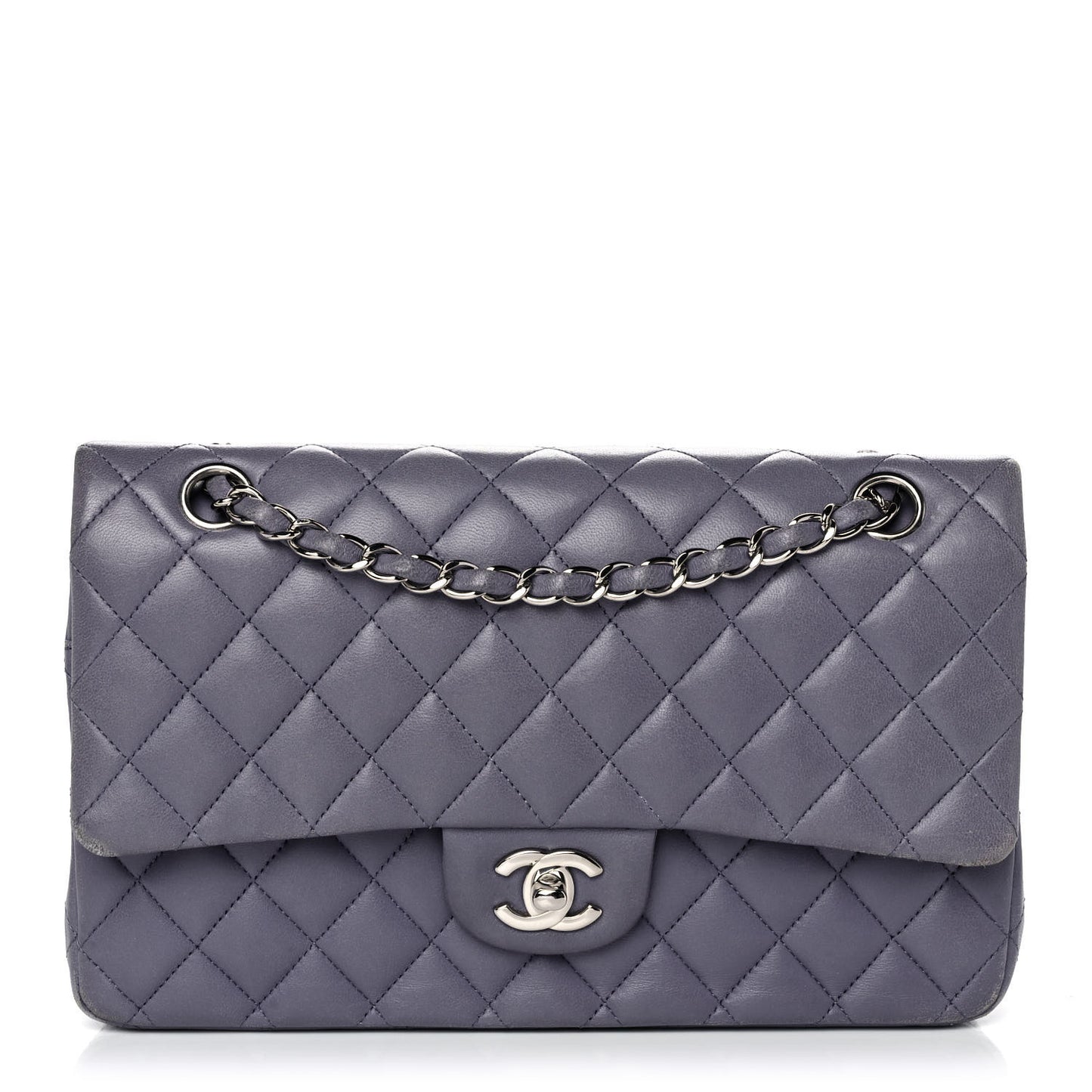This is an authentic CHANEL Lambskin Medium Double Flap in Lavender. This chic shoulder bag is crafted of diamond quilted lilac lambskin leather and features a polished gold chain link shoulder straps threaded with matching lilac leather, a facing flap with a polished gold Chanel CC turn lock and rear patch pocket. This opens to a second flap and a matching leather interior with patch pockets and a stitched CC logo on the inner flap.Follow this item for alerts. Chanel is a registered trademark of Chanel. FASHIONPHILE is not affiliated with Chanel.