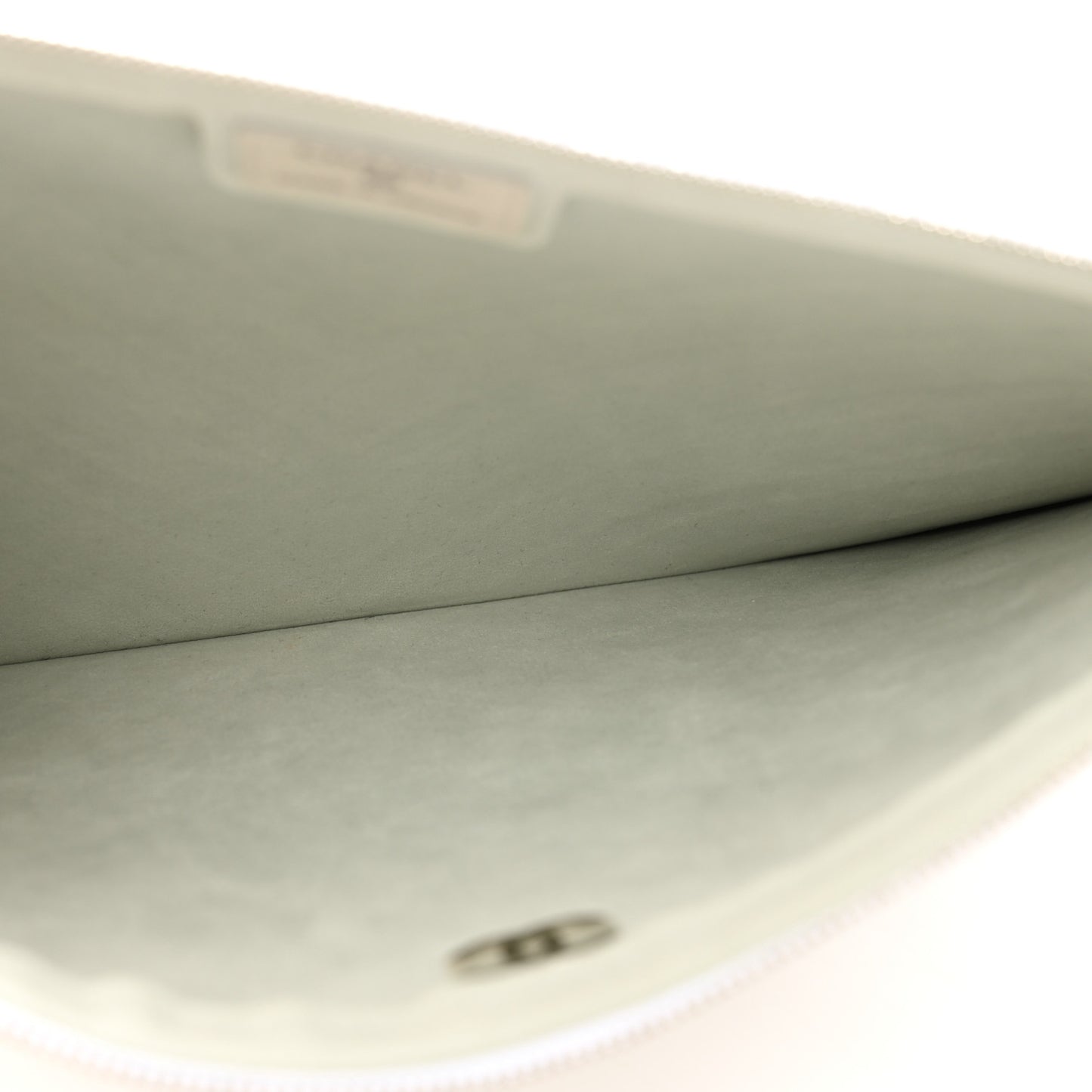 Chanel/ Accessories/ Clutch & Evening /Chanel Lambskin Metallic Chevron Zip Pouch White Silver
