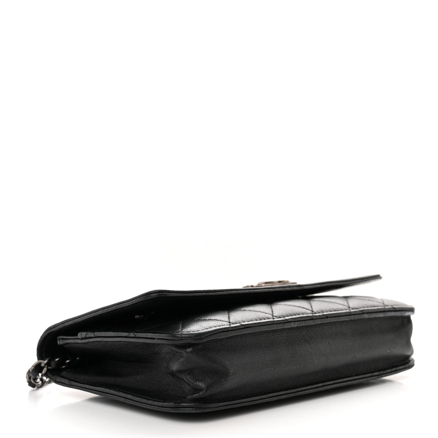 Lambskin Quilted Boy Wallet On Chain WOC Black