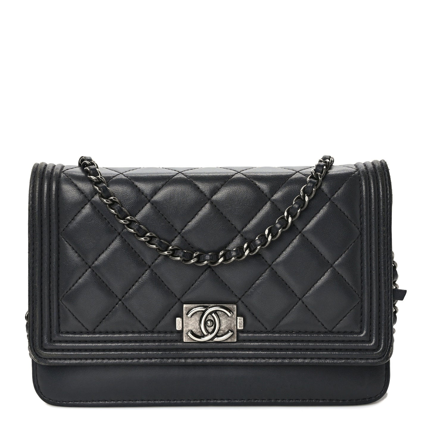 Chanel/ Bags/ Wallet Style /Chanel Lambskin Quilted Boy Wallet On Chain WOC Dark Grey