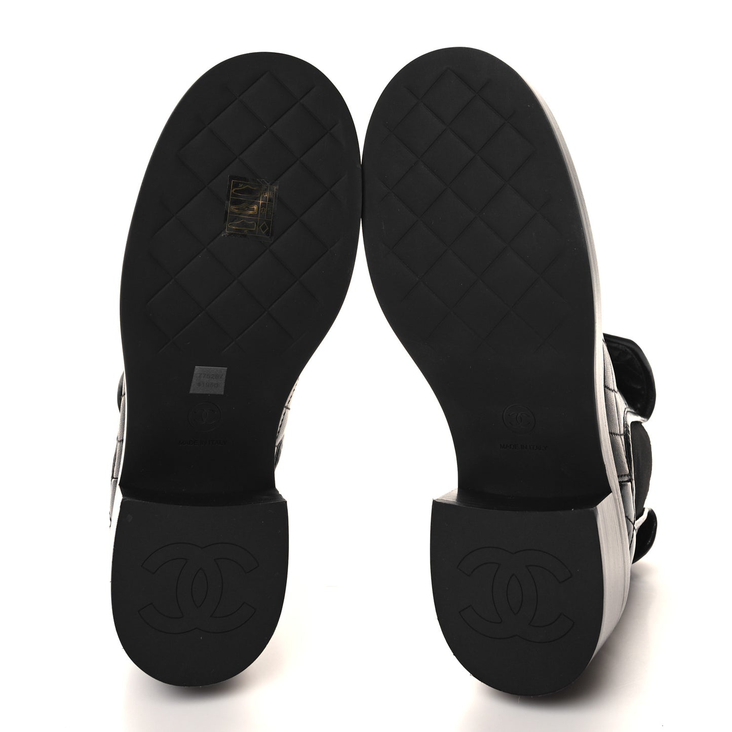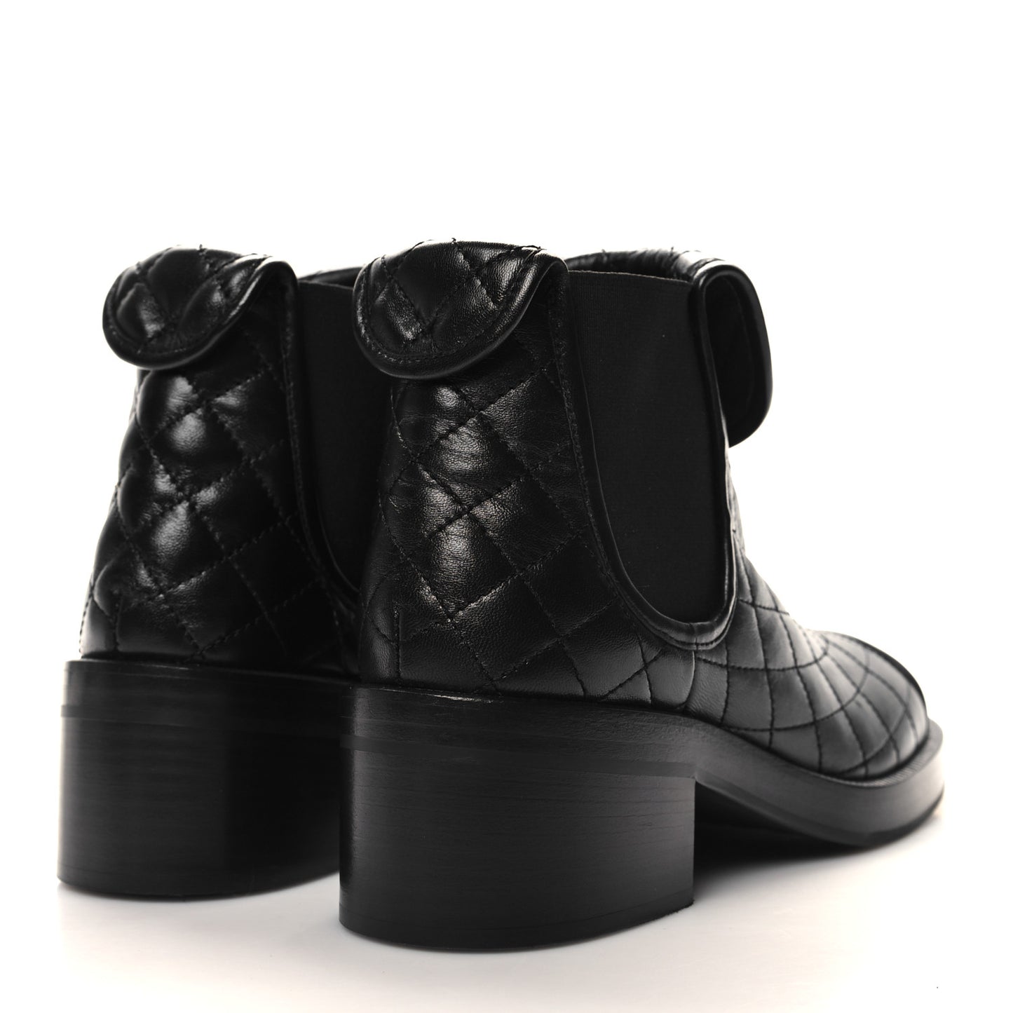 Lambskin Quilted Cap Toe CC Turnlock Booties 37 Black
