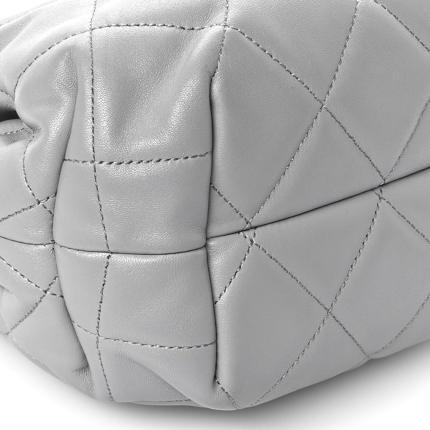 Lambskin Quilted CC Dweller Drawstring Bucket Bag Light Grey
