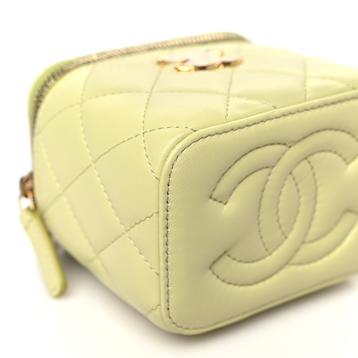 Lambskin Quilted CC Mini Vanity Case With Chain Light Green