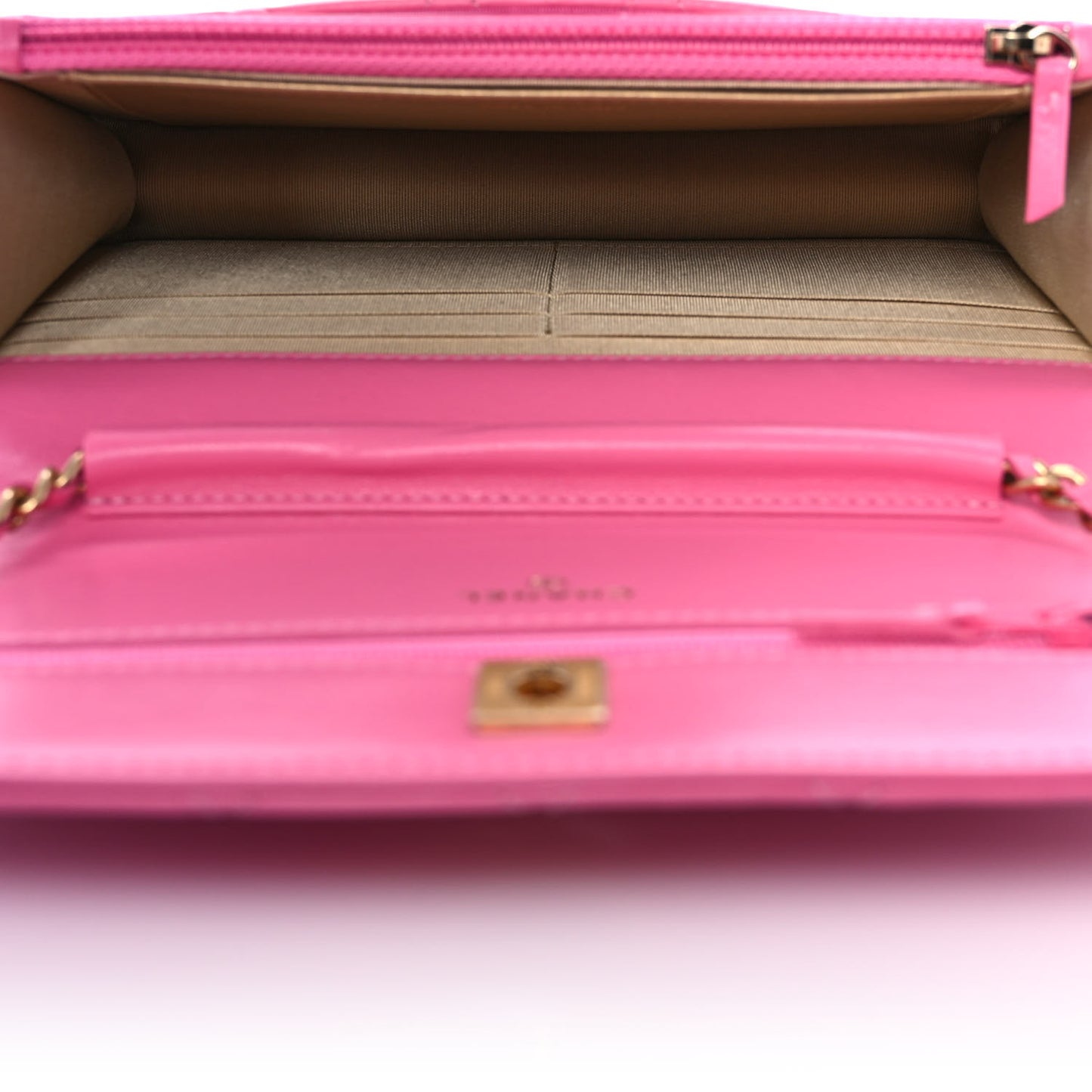 Lambskin Quilted CC Pearl Crush Wallet on Chain WOC Pink