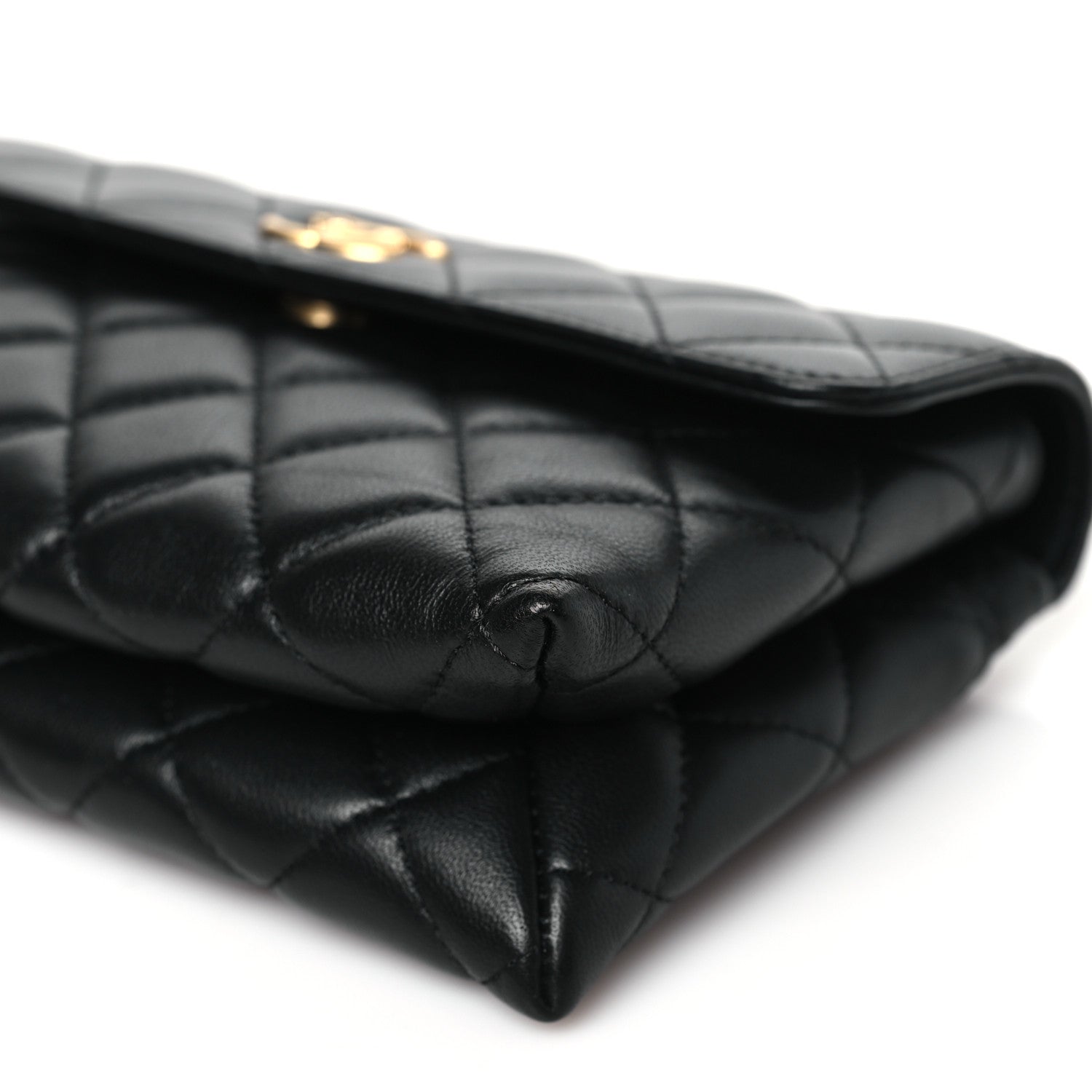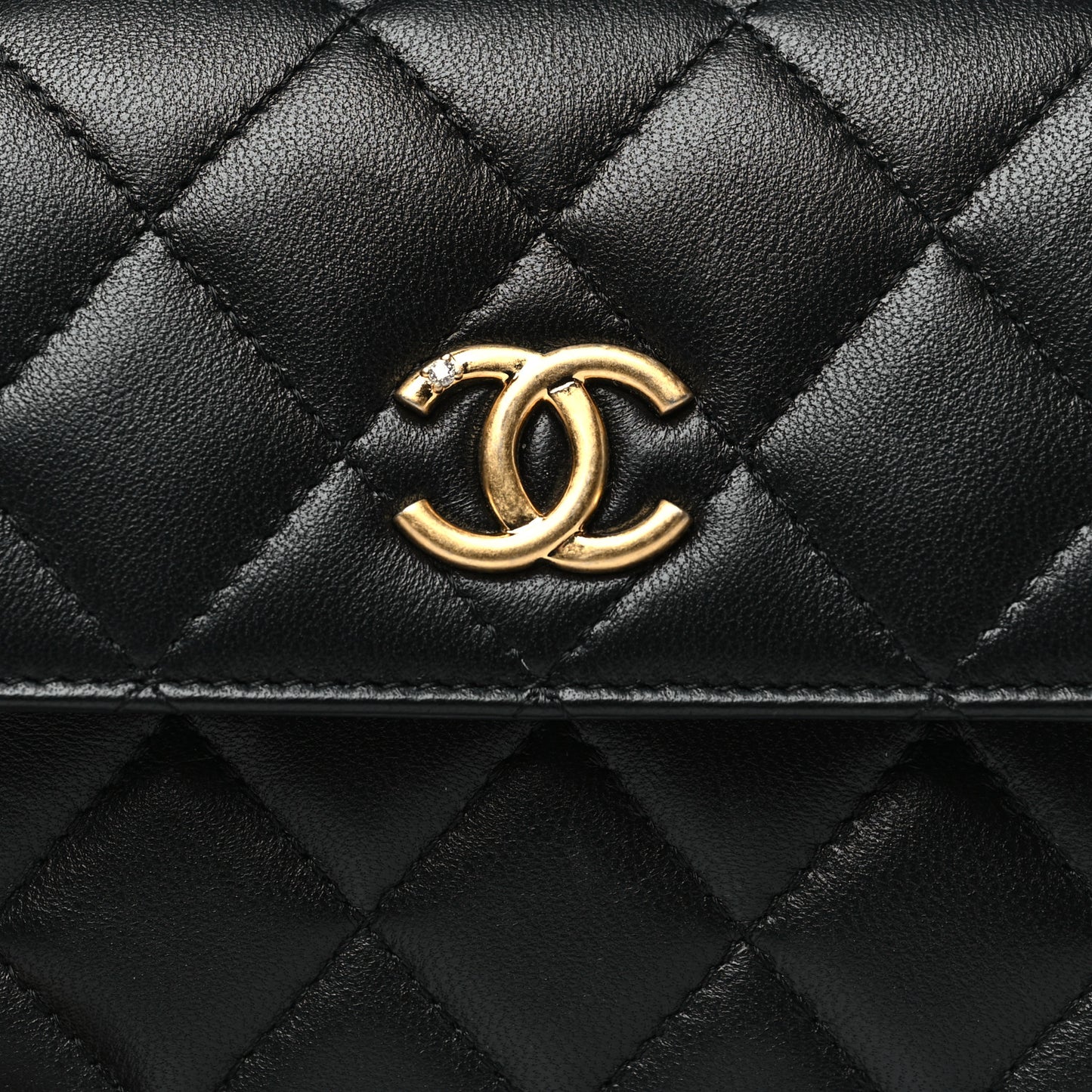 Lambskin Quilted CC Pouch With Handle Black
